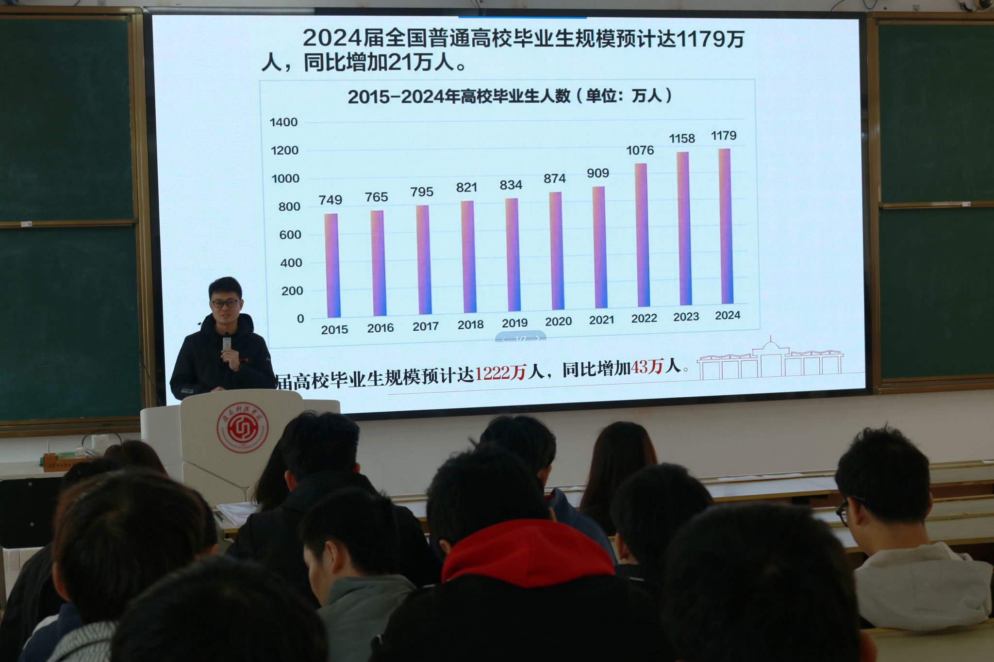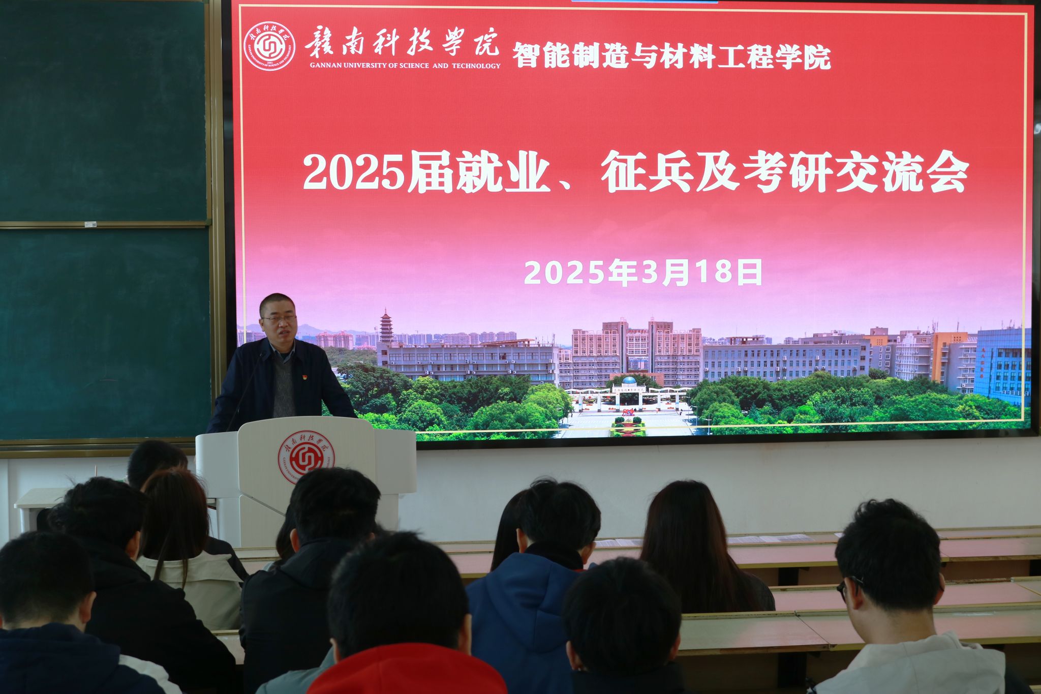 本网讯:为深入贯彻落实国家就业优先战略,切实做好2025届毕业生就业服务与指导工作,3月18日上午,2026世界杯预测于崇善楼Z1D2教室召开专题交流会,聚焦就业、征兵、考研三大主题,为毕业生明晰发展方向、凝聚奋进力量。智能制造与材料工程公司党委副书记朱根松,党委委员肖志华,毕业班辅导员及200余名毕业生代表共同参会。
