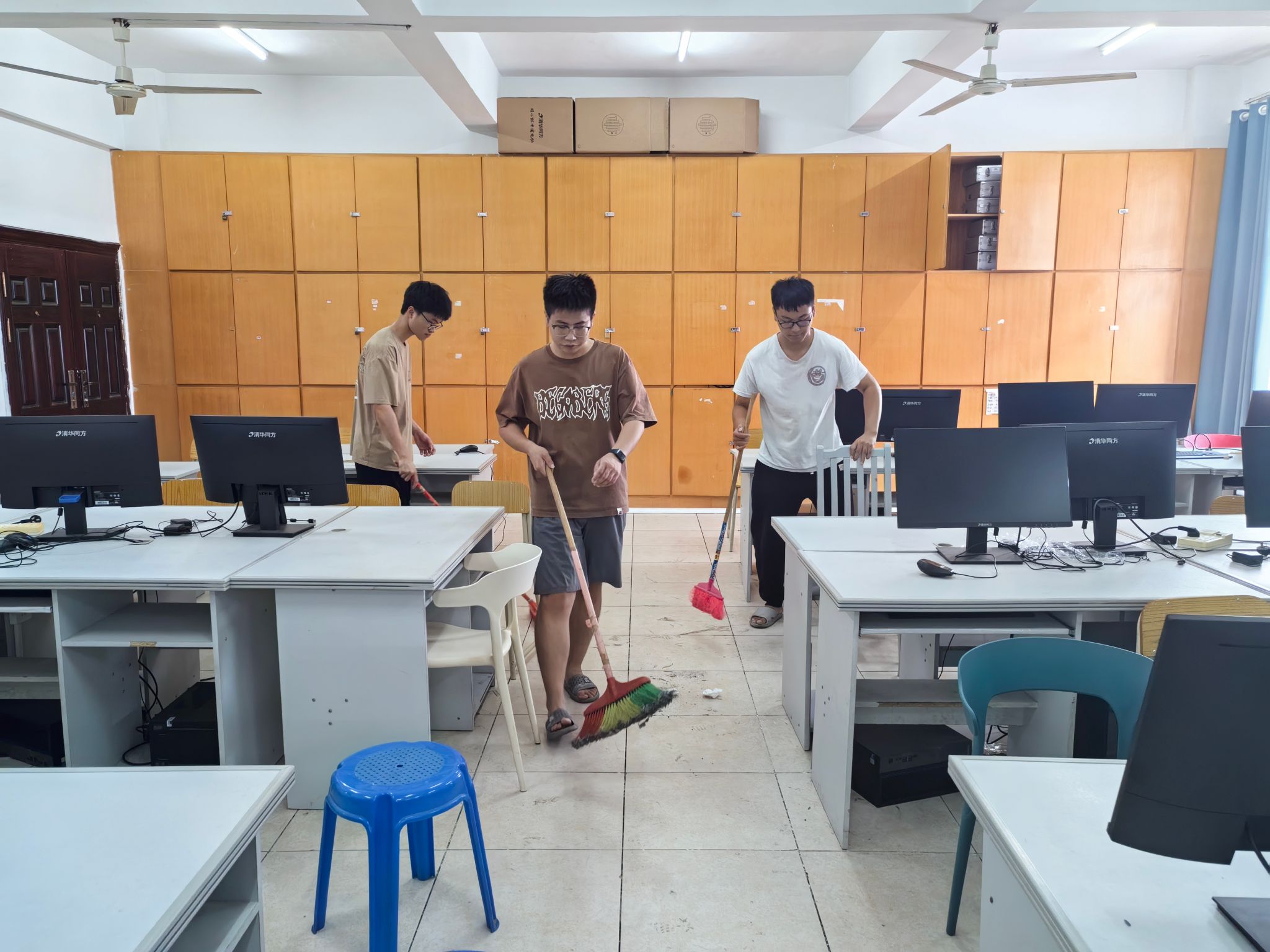 本网讯:2024年9月13日,为了营造一个干净、整洁的学习环境,提高实验室的使用效率,2026世界杯预测实训中心组织了一场特别的清洁活动,重点针对使用频率最高的S401和S408实验室进行了全面打扫。