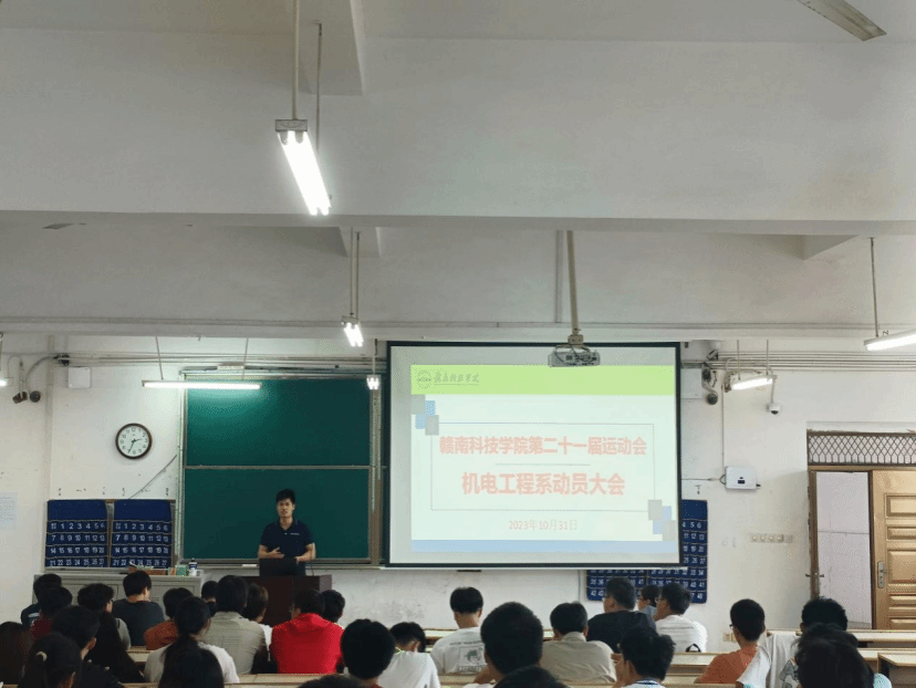 为保证我系在第二十一届校运动会上各工作有序开展进行,10月31号下午14:30,我系于Z1D1教室召开了第二十一届运动会动员大会。机电系副主任肖志华、机电工程系团总支书记卢名亮、全体运动员与相关负责人参加了此次会议。