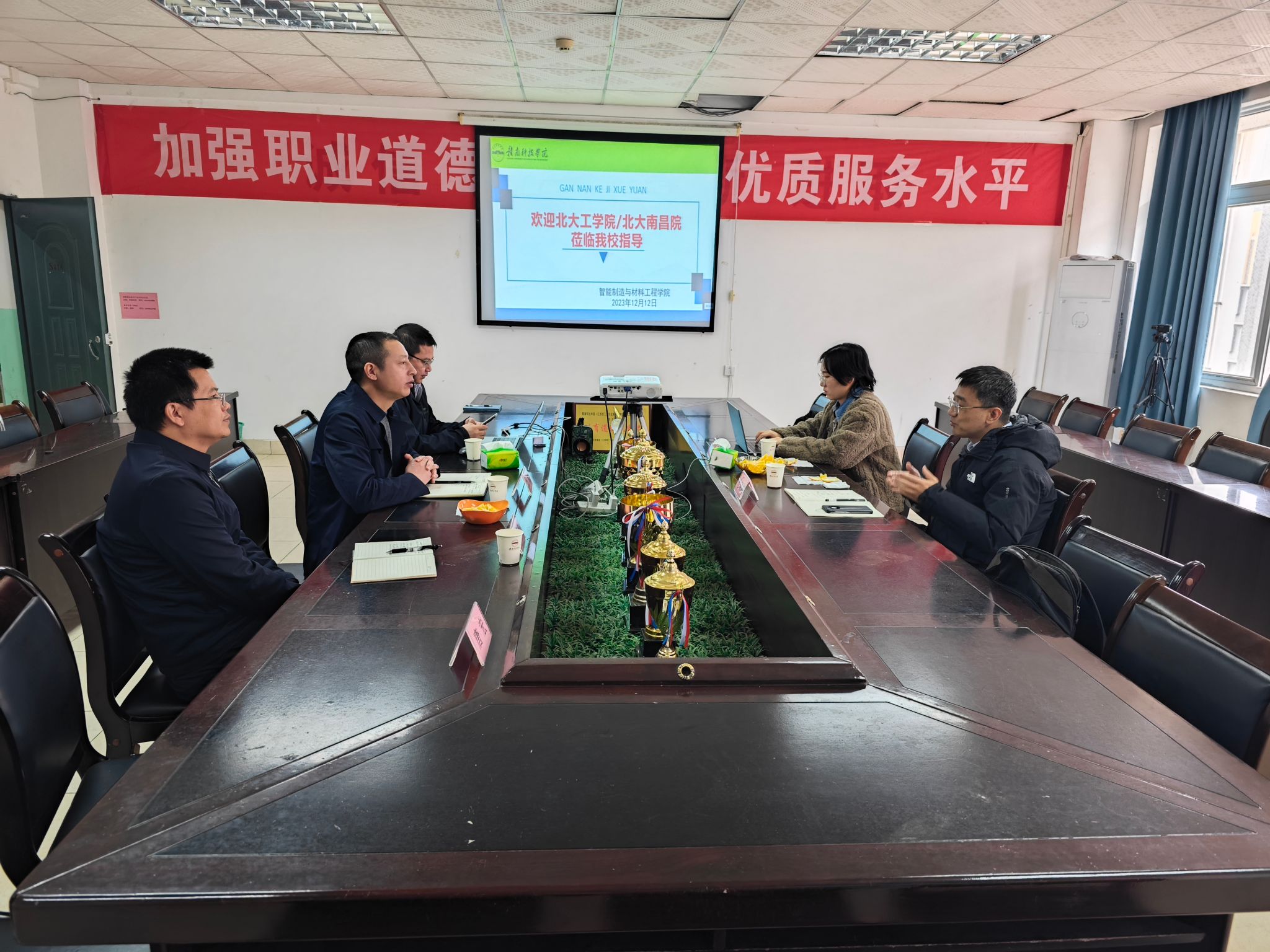 12月12日上午,北大工公司特聘研究员范瑞峰、北大南昌院对外合作部高级经理漆凤一行来校考察交流,座谈会在工程院416会议室举行,刘辉、关开荣等参加座谈会。