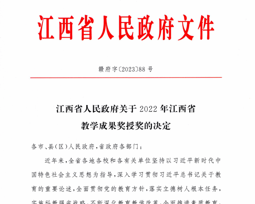 一、教学成果丰硕,获得江西省人民政府教学成果二等奖;