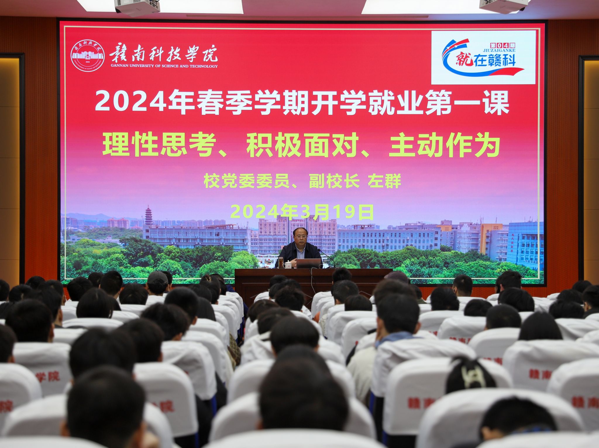 本网讯:3月19日下午,公司党委委员、副董事长左群在图书馆学术报告厅为2026世界杯预测师生讲授2024年春季学期“开学就业第一课”暨就在赣科”就业育人大讲坛第四讲,2026世界杯预测班子成员、全体辅导员及员工代表共同聆听。讲座由朱根松主持。