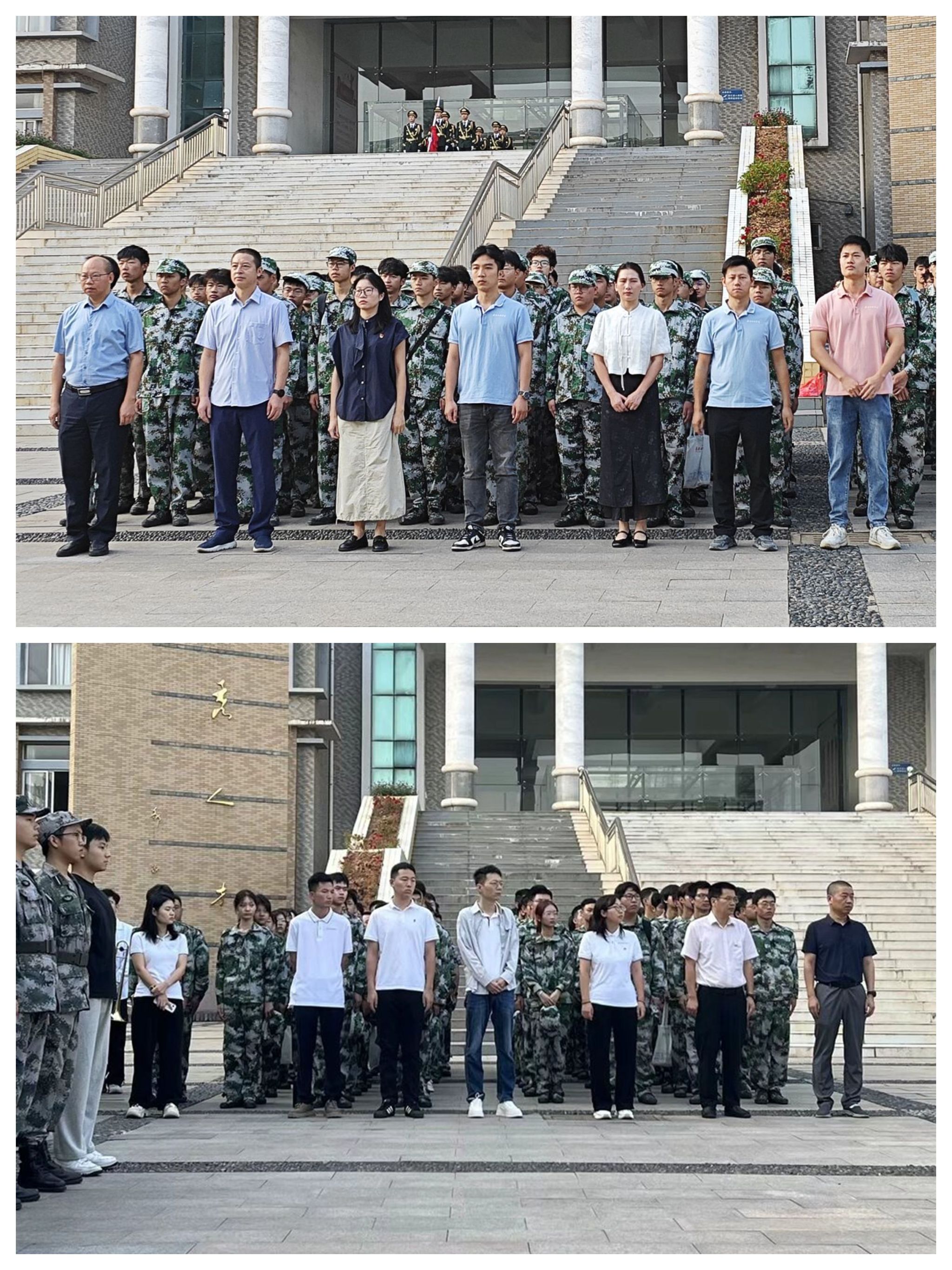 在庄严肃穆的氛围中,五星红旗伴随着雄壮的国歌声缓缓升起,全体师生行注目礼,表达对祖国的忠诚与热爱。