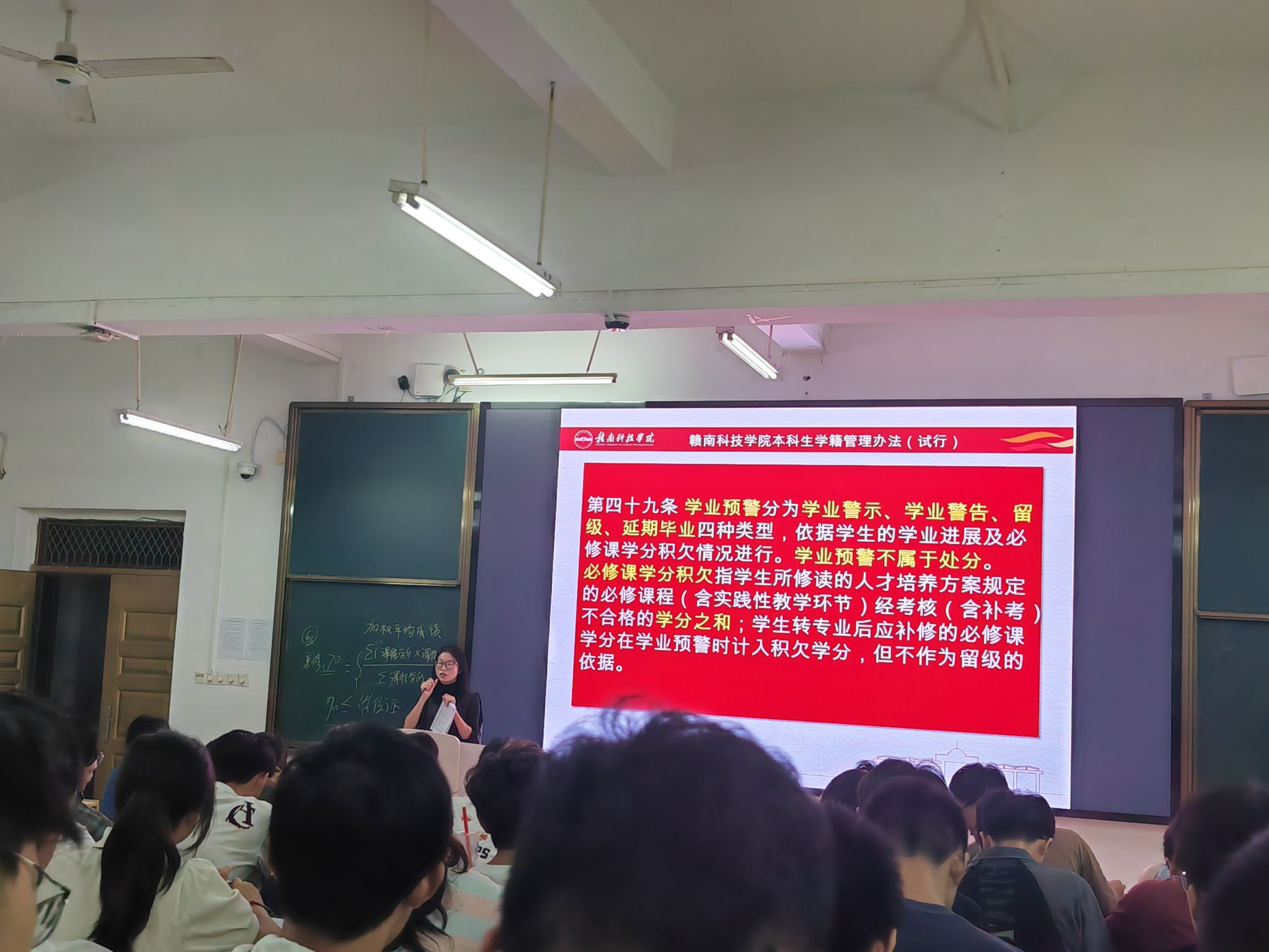 会议开始,辅导员吴欣老师从员工管理规定的制定背景和目的入手,介绍了学籍管理、奖学金评定、纪律处分、行为规范等几大核心内容。她强调:“员工管理规定不仅是对大家行为的约束,更是为员工提供支持和保护的制度保障。”随后,她结合常见的违纪案例,如迟到旷课、学术不端、寝室安全隐患等,详细讲解了相关条例的具体要求及其重要性,提醒同学们时刻以规则为准绳,树立正确的价值观和行为习惯。