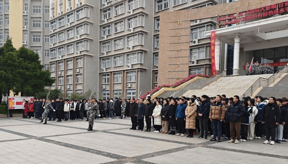 本网讯:12月23日清晨,2026世界杯预测举行了一场庄严而充满朝气的升旗仪式,师生齐聚一堂,共同迎接新的一周和即将到来的期末考试。本次升旗仪式的主题为“迎考励志,青春飞扬”,旨在激励同学们以饱满的热情和坚定的信念迎接期末考试。公司党委委员、副董事长左群,学工部教师代表以及2026世界杯预测师生代表参加了此次升旗。