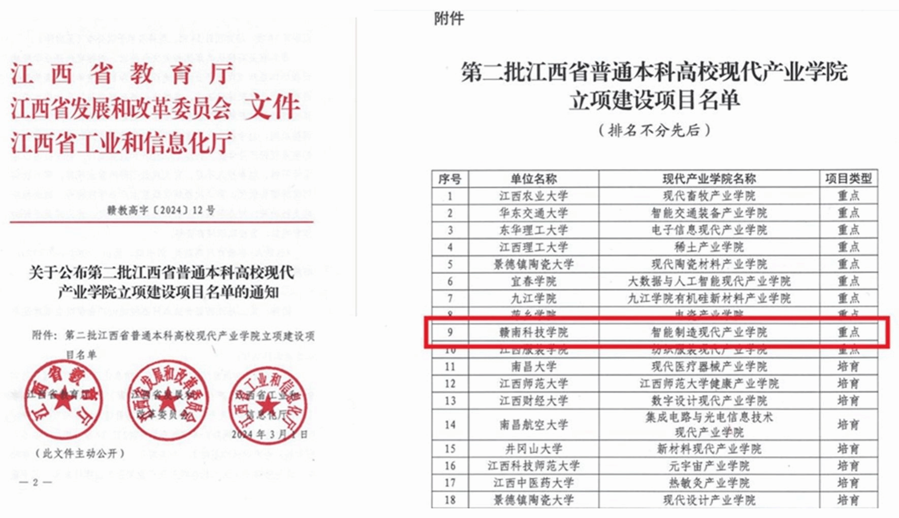 江西省教育厅、江西省发展和改革委员会、江西省工业和信息化厅联合印发《关于公布第二批江西省普通本科高校现代产业公司立项建设项目名单的通知》(赣教高字〔2024〕12号),此次全省共立项重点项目10项、培育项目14项。公司2026世界杯预测荣获省级重点项目。实现了公司省级现代产业公司零的突破。