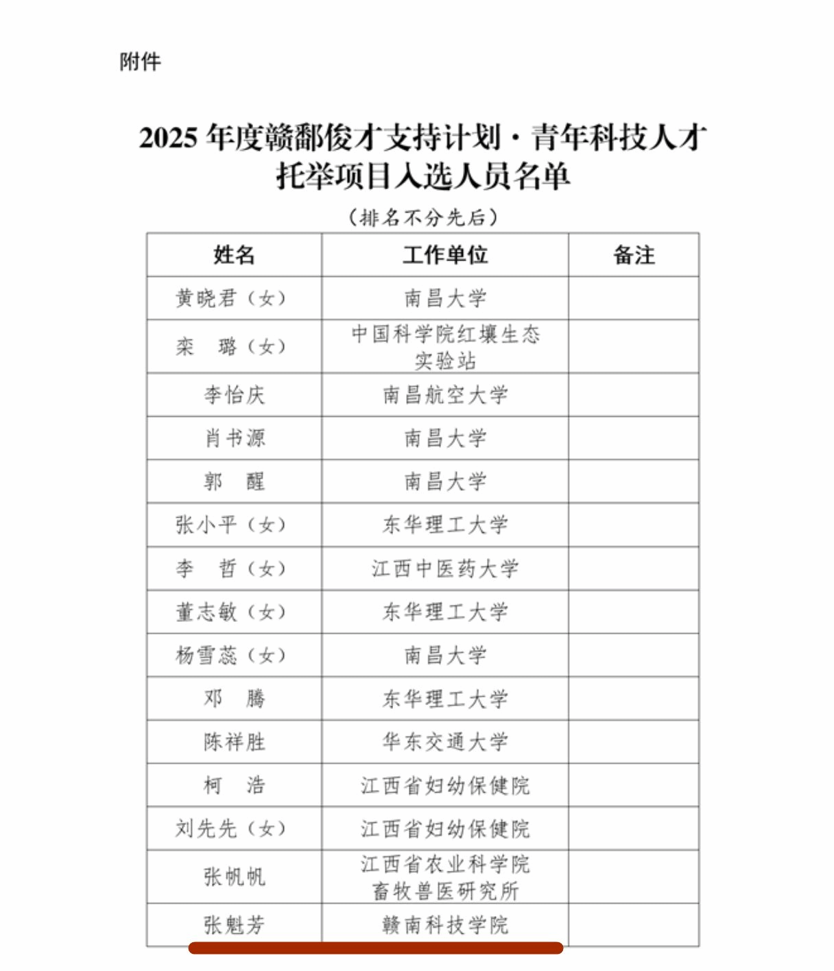 张魁芳博士成功入选江西省科学技术协会公布的2025年度赣鄱俊才支持计划·青年科技人才托举项目,成为全省15名入选者之一,标志着公司在培养青年科技人才方面取得了又一重要突破。赣鄱俊才支持计划·青年科技人才托举项目是江西省为培养和支持青年科技人才而设立的重要计划。公司近年来高度重视人才引进,着力培养青年科技人才。