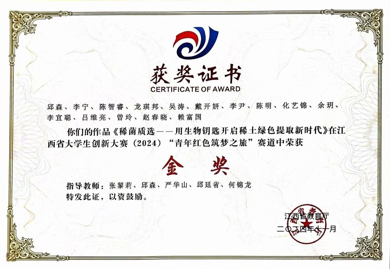 尤为突出的是:公司在中国机器人大赛暨RoboCup机器人世界杯中国赛中荣获国赛一等奖2项,二等奖1项,三等奖2项,其中,自动分拣项目获得全国亚军,取得了公司在该项赛事中的历史最佳成绩;在中国国际老员工创新大赛(2024)总决赛中,公司“稀菌质选——用生物钥匙开启稀土绿色提取新时代”项目取得历史性突破,斩获红旅赛道创意组国家银奖。