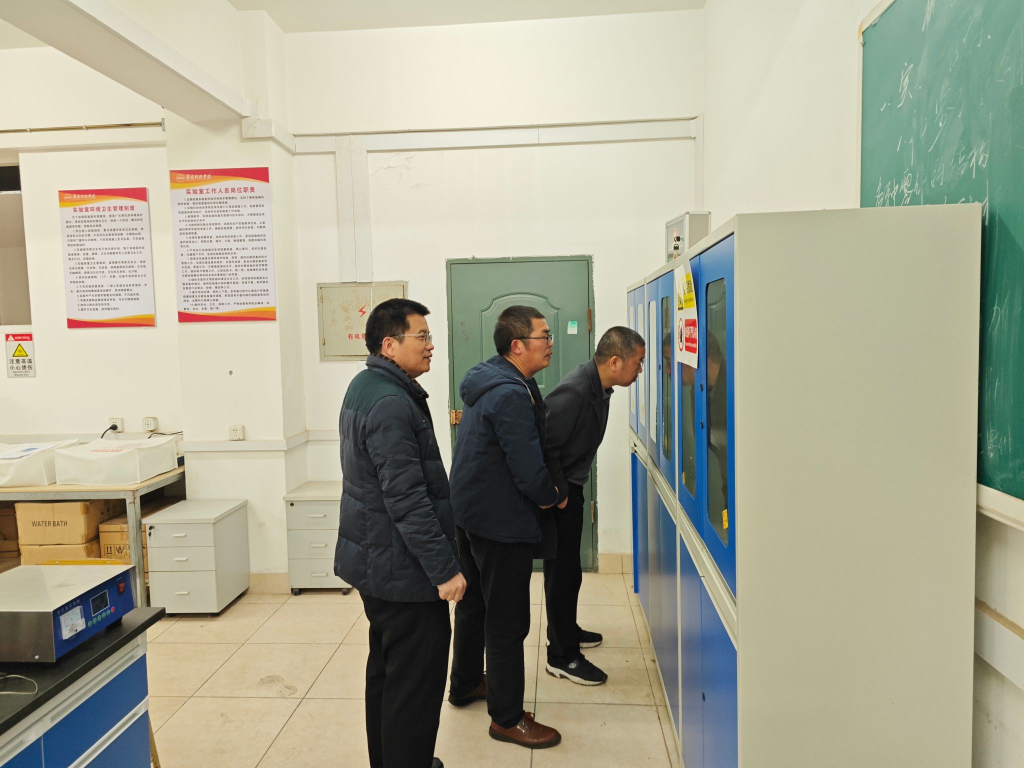在化学实验室,检查人员对实验室的化学品存放、使用及废弃物处理进行了细致检查。检查团队逐一核对化学品台账,确保危险化学品的存储符合规范,并对通风系统、消防设施等进行了全面检测,确保设备运行正常。同时,检查人员还对实验室的安全管理制度落实情况进行了核查,要求实验室负责人加强日常管理,定期开展安全培训,提升师生的安全意识与应急处理能力。