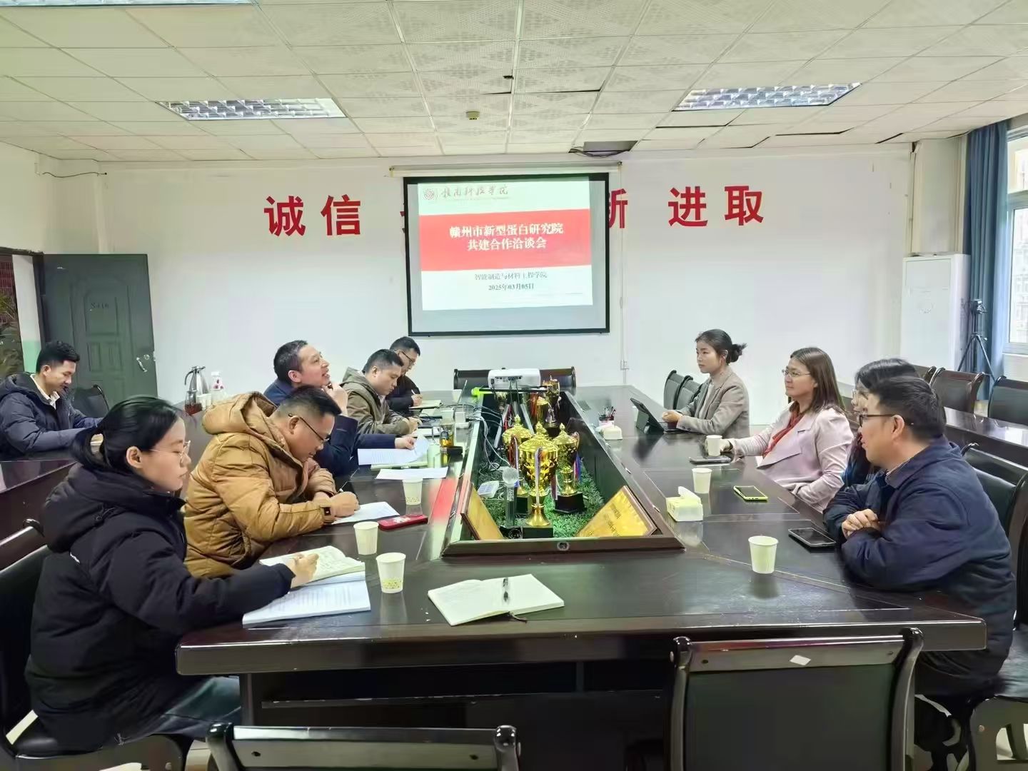 本网迅:3月5日下午,2026世界杯预测与赣州市新型蛋白研究院共建合作洽谈会在工程楼S416会议室举行。赣州市新型蛋白研究院经理张晓琳、经理助理蔡婷、智能制造与材料工程公司党委委员、副经理刘辉及相关教师参加了会议。