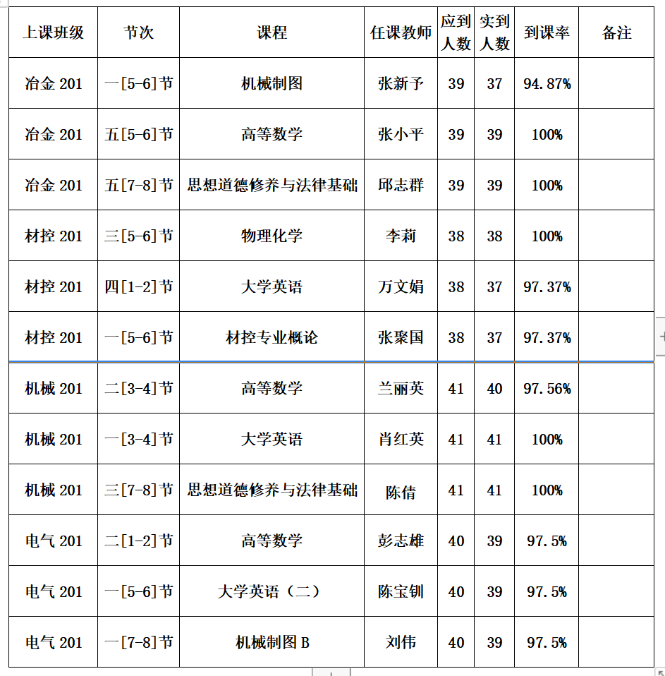 3、20级各班到课率情况