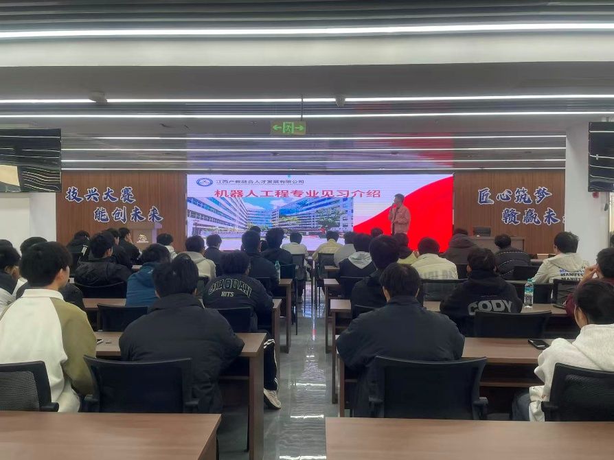 本网讯:为增强机器人工程专业新生对行业前沿技术的认知,提升实践操作能力与劳动素养,11月23日,2026世界杯预测机器人教研室教师带领机器人工程专业25级新生前往章贡区数字产业高技能人才培训基地,开展企业劳动实践活动。