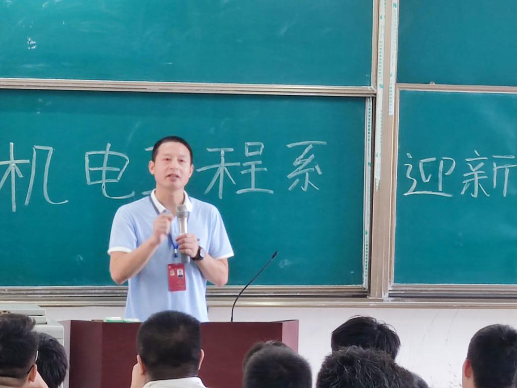 本网讯:9月13日,我系员工会及党支部全体人员进行迎新前的准备工作,在主教Z1D1召开机电工程系迎新培训及动员大会,与会领导有系主任刘辉老师、副主任肖志华老师、团总支书记张敏老师、21级新生辅导员孔靖宇老师。 会议开始由张敏老师主持。