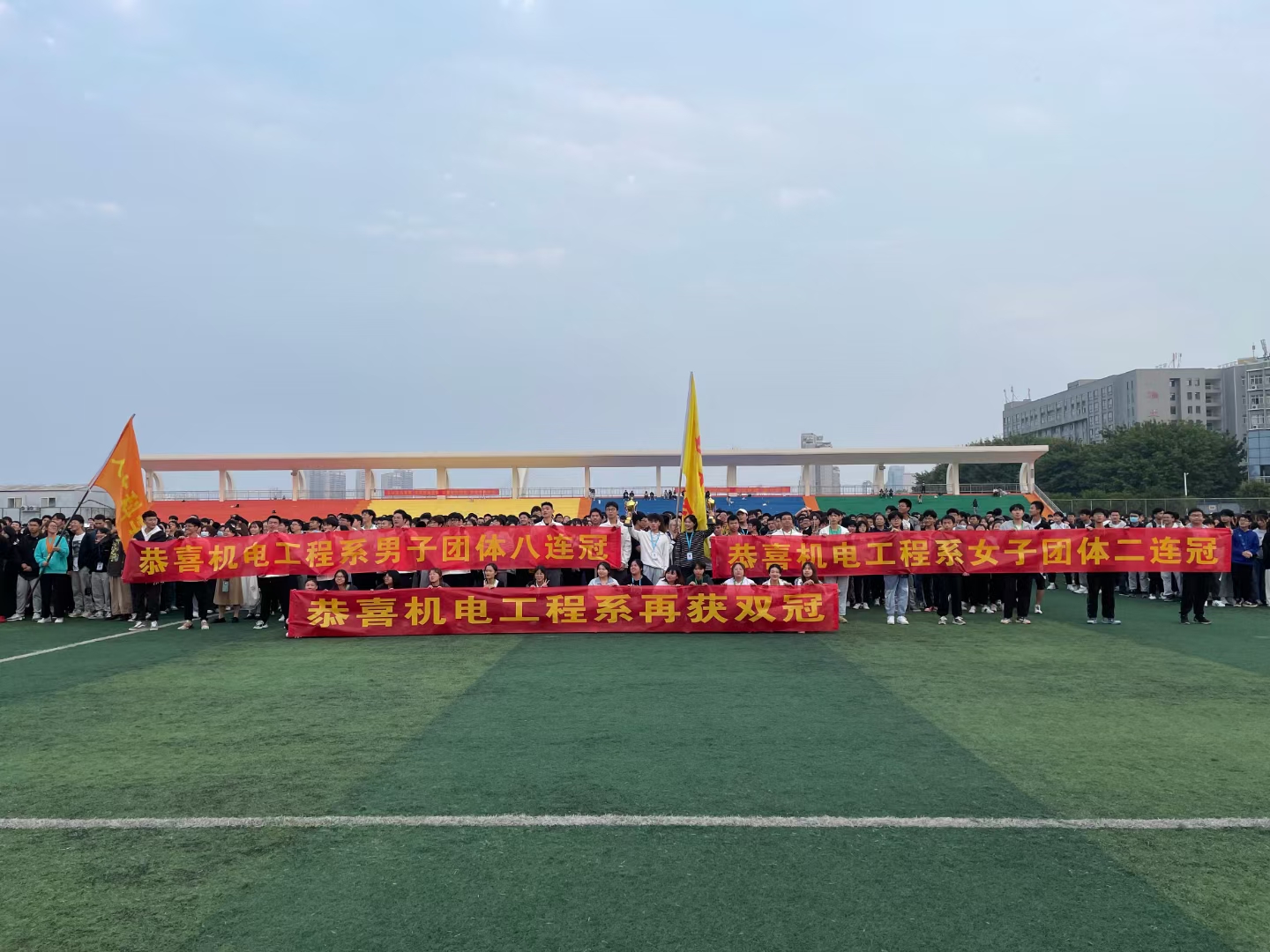 机电系师生团结奋进,为运动员提供良好的后勤保障。运动健儿驰骋赛场,为集体而拼搏,为荣誉而奋斗。雄姿英发,彰显机电雄风、赣科精神。满载荣誉而归,我们依然前行,发扬运动精神,共创机电新篇章!