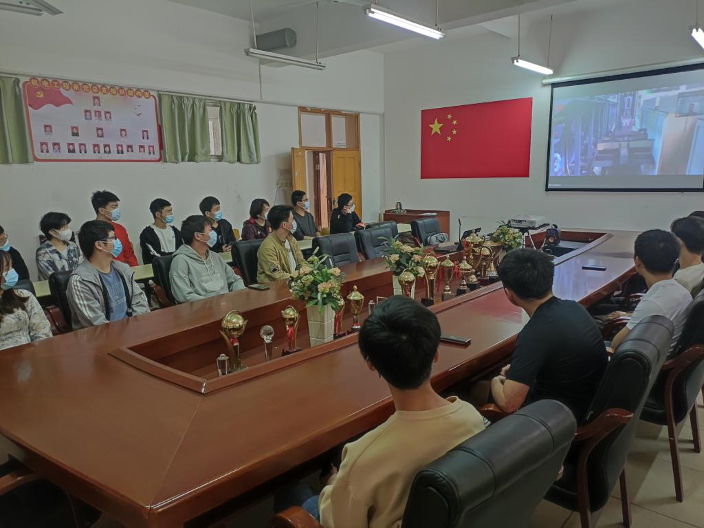 本网讯:4月21日,机电工程系联合杭州杰牌传动科技有限公司举办了线上云宣讲招聘会,机电工程系、信息工程系共50余名同学在崇善楼8楼会议室线下集中参加了招聘会,校外实习的员工线上分散参加了招聘会。