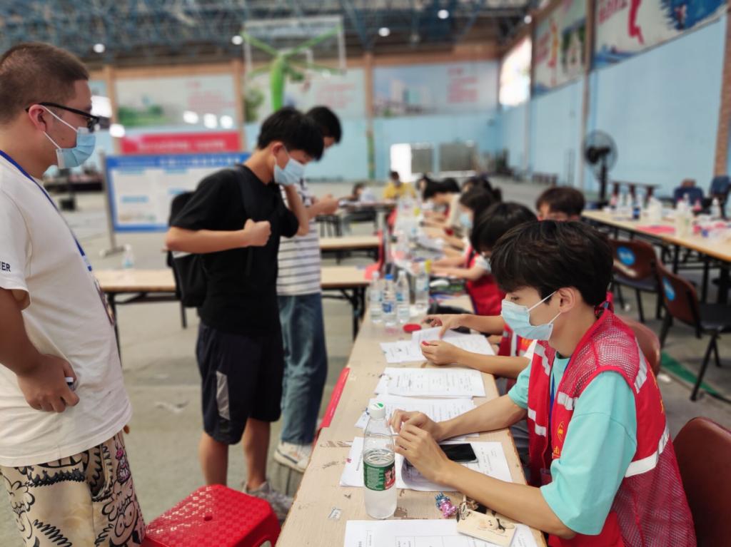 世界杯冠军预测入口过渡期管委会常务副主任何锦龙在新生报到处慰问夜班志愿者们。