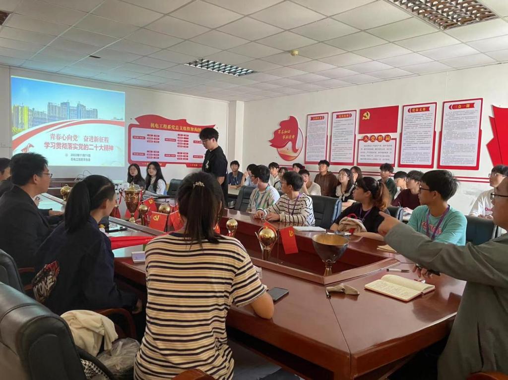 2022年11月11日,机电工程系员工会统筹开展学习二十大精神活动,各部门负责人悉数到场,在本院团委张敏老师的带领下,主要学习了关于高举中国特色社会主义伟大旗帜,坚持马克思列宁主义、毛泽东思想、邓小平理论、“三个代表”重要思想、科学发展观,全面贯彻习近平新时代中国特色社会主义思想,分析了国际国内形势,党的二十大主题的提出等方面。张敏老师带领机电工程系团总支干部一起回顾我党在过去5年的工作和新时代10年的伟大变革。