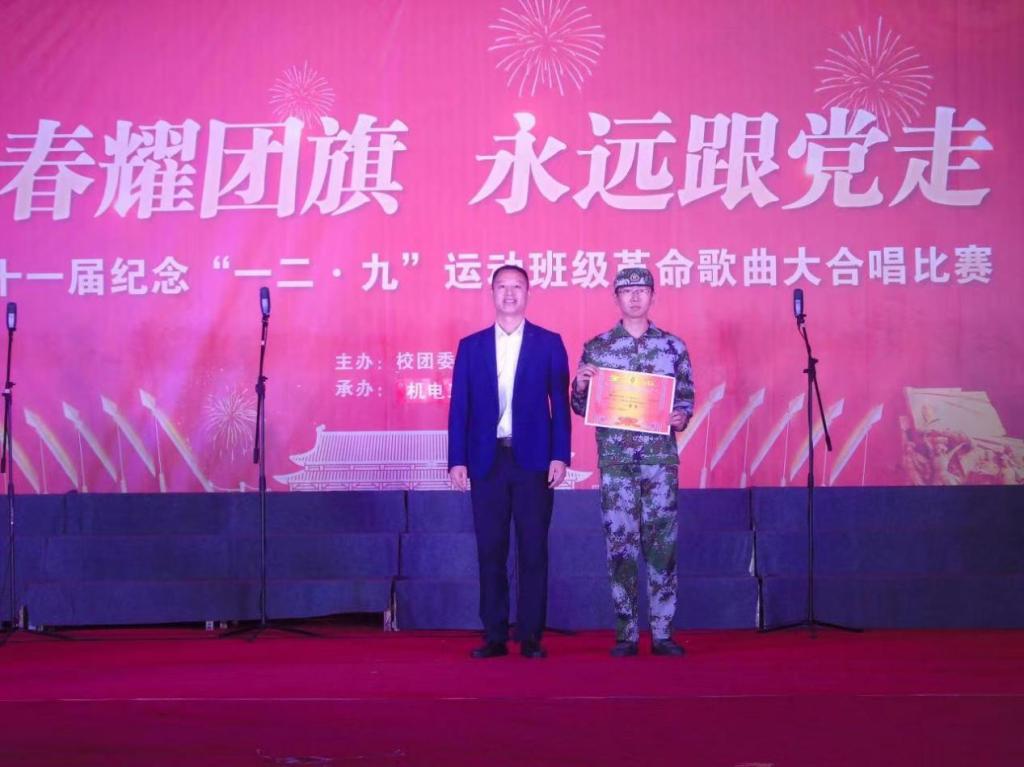 时间来到晚上七点,夜幕也已来临。机电工程系刘辉主任、肖志华老师和思政部徐帆老师也出席了此次比赛。在激烈而又紧张的比赛过程中,冶金222班以优异成绩斩获一等奖,机器人221班与材控221班荣获二等奖,冶金221班、机械223班与自动化222班荣获三等奖。冶金221班陈笑涵同学荣获“最佳指挥”称号,机器人221班黄景森同学荣获“最佳领唱”称号,材控221班王浩志同学荣获“最佳朗诵”称号。