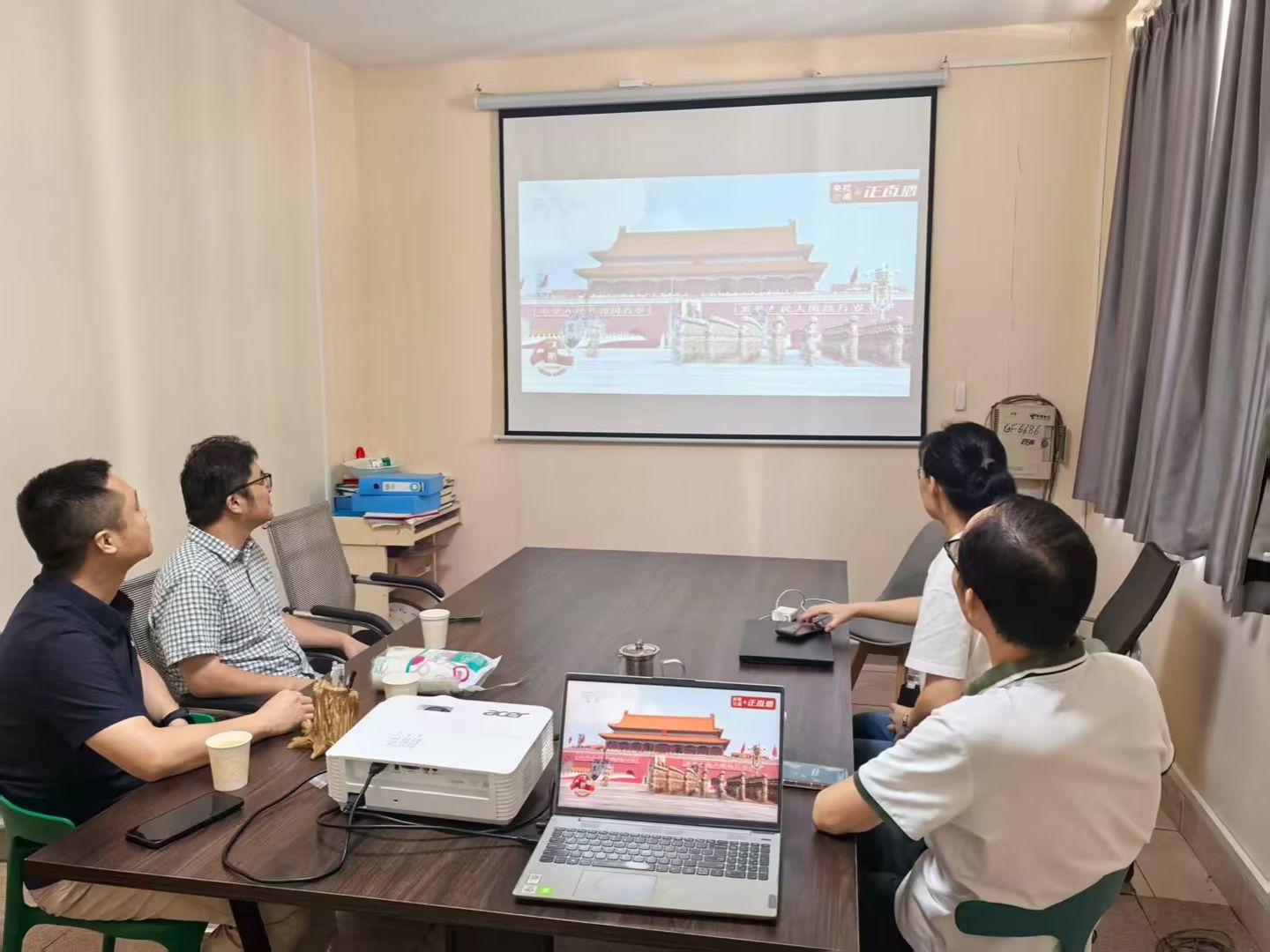 公司高度重视此次活动,提前制定了详细的观看方案。教师们以教研室为单位,在各教研室会议室线下集中观看;校外教师则通过中央广播电视总台、学习强国、公司官网等平台线上自主观看。全体在校员工党员佩戴党员徽章,提前10分钟便整齐有序地在公司党员活动室集合完毕,而因公司尚未开学,其他员工也按照要求通过官方平台进行线上观看。