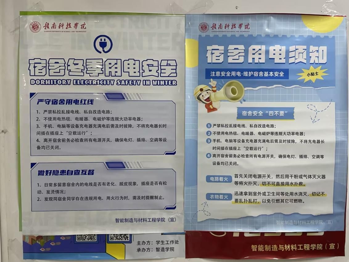 由辅导员、党员干部组成12个检查小组,对全院员工宿舍开展"拉网式"排查。重点检查违规电器使用、私拉电线、易燃物堆积等问题,累计发现并整改隐患若干处,包括劝诫不使用大功率电器、阳台杂物清理、规范充电行为。检查过程中,工作人员同步建立"一宿舍一档案",对存在多次违规的宿舍开展"一对一"安全教育。