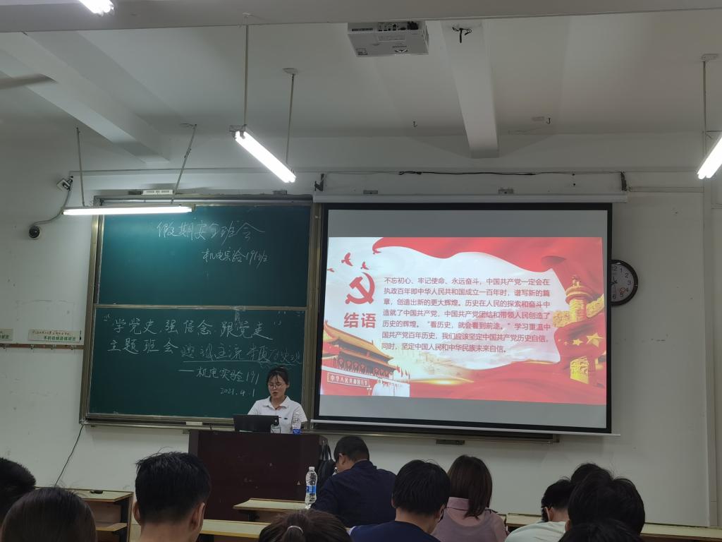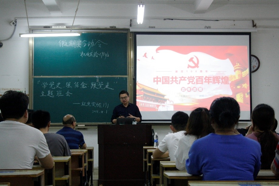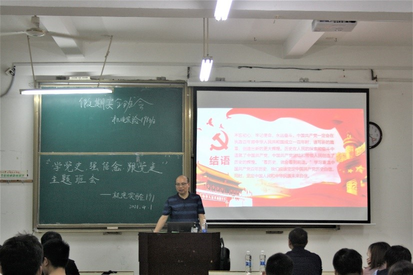 本网讯:百年征程波澜壮阔,百年初心历久弥坚。2021年4月1日,机电实验191班在崇善楼Z114教室开展“学党史,强信念,跟党走”主题教育班会活动。公司党委书记邓亦林,班主任梅宏标及机电实验191班全体同学参加了此次班会。
