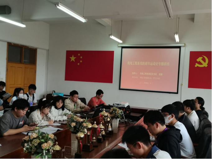 本网讯:2022年4月22日,值此建团一百周年之际,为充分带领广大团员青年共同深入学习党领导中国青年运动的光辉历程,团结引领广大团员青年在学思践悟中踔厉奋发、砥砺笃行,机电工程系围绕“喜迎二十大、永远跟党走、奋进新征程”主题,组织开展“党的青年运动史”专题讲座。机电工程系团总支书记张敏老师主持召开机电工程系党的青年运动史专题讲座,机电工程系团总支员工会工作成员参加本次讲座。