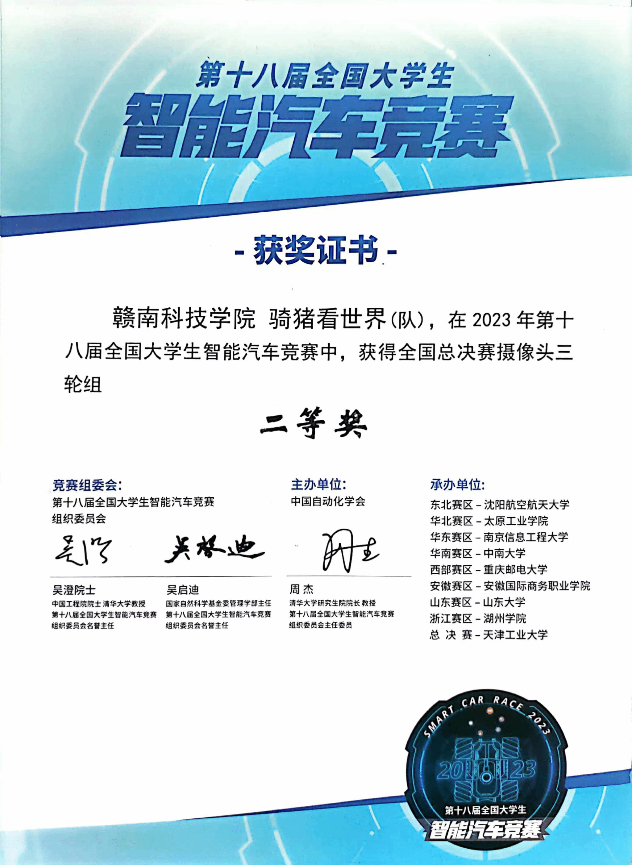 本网讯:8月17日至19日,第十八届全国老员工智能汽车竞赛全国总决赛在天津工业大学举办,公司参赛队伍荣获摄像头组二等奖的好成绩。