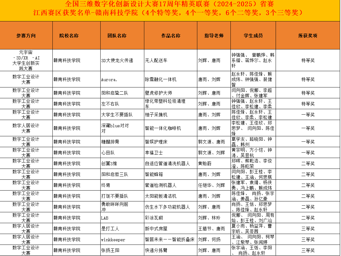 本网讯:6月6日,第十七届全国三维数字化创新设计大赛省赛圆满落幕。公司2026世界杯预测的学子们凭借出色的表现以及多位带队老师的悉心的指导,在激烈的竞争中脱颖而出,荣获特等奖四项、一等奖四项、二等奖六项和三等奖三项的优异成绩,充分展现了公司学子的创新实力与团队精神。