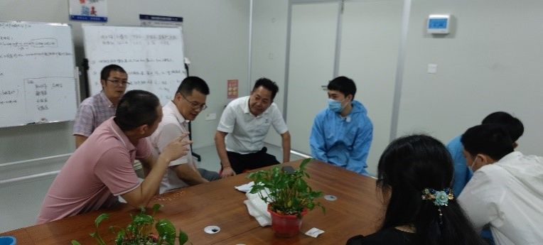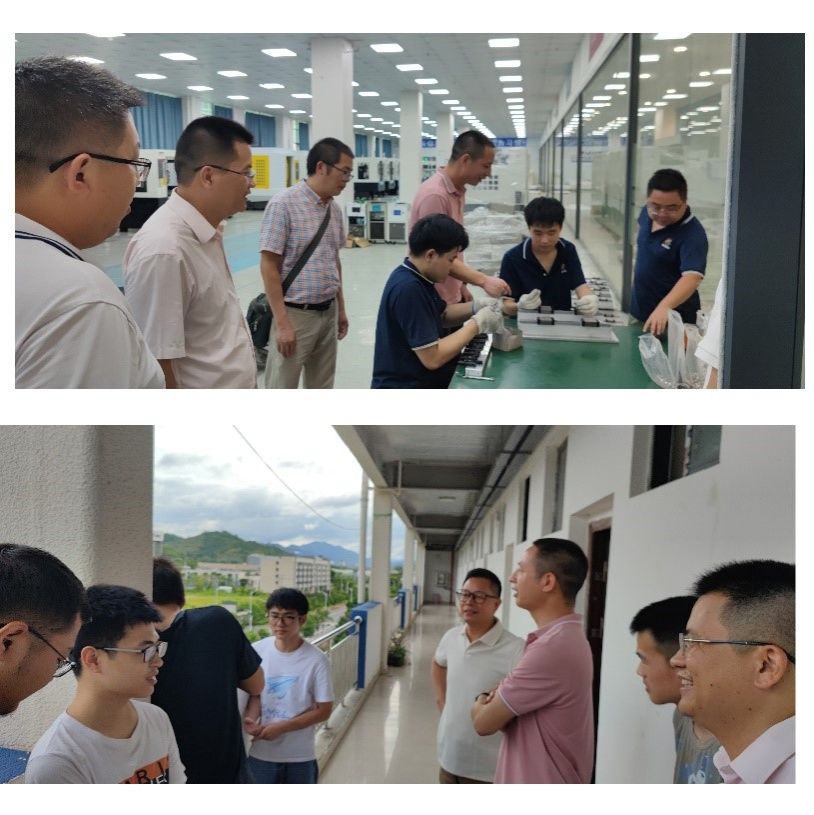 刘辉一行率先走访江西华派光电科技有限公司,就员工长实习和科研服务等内容与华派公司领导淦农夫、樊静波展开讨论,并签署校企合作协议,随后去企业车间看望实习员工,了解员工们的在生产工作中遇到的问题,并提出建议。