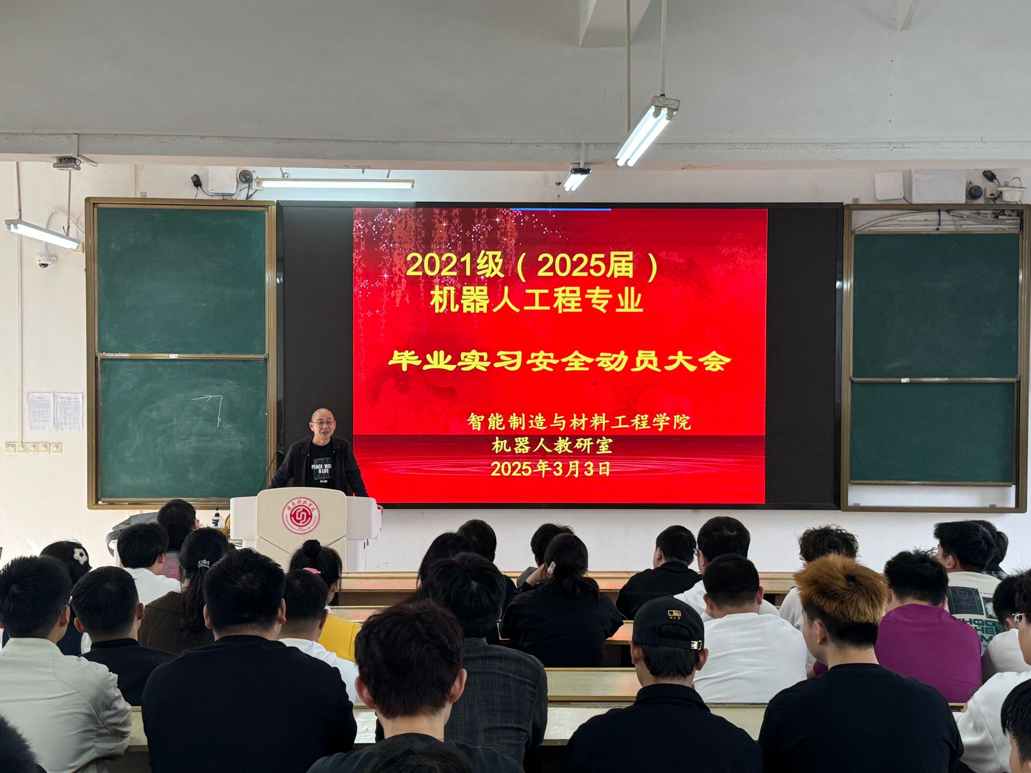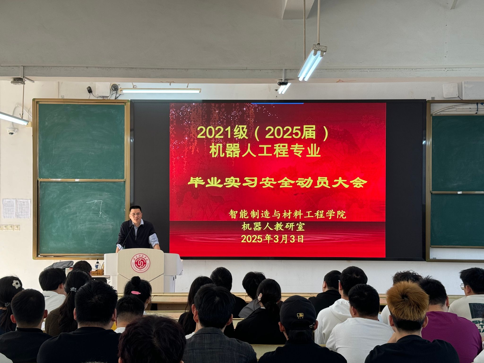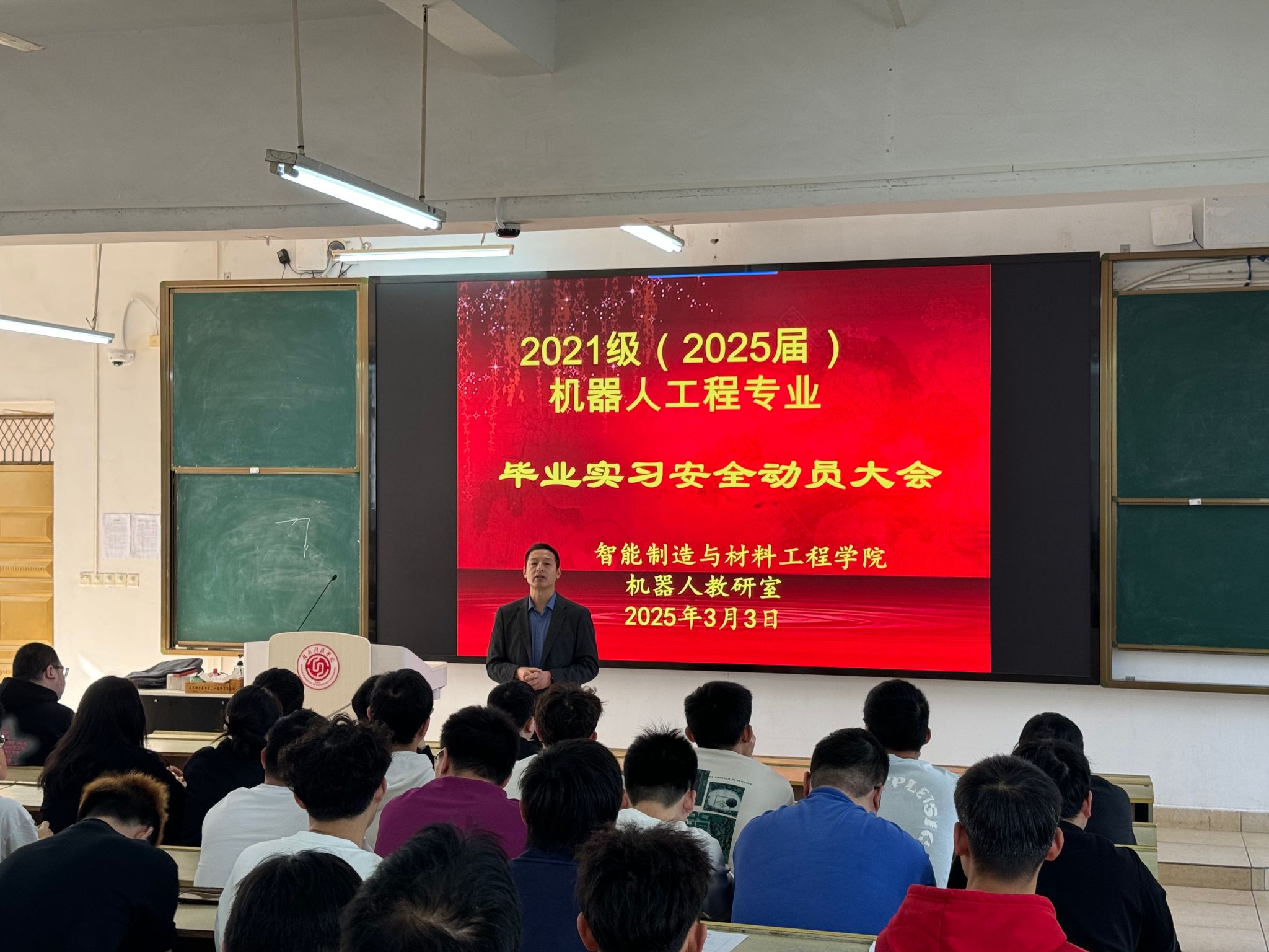 本网讯:3月3日,2026世界杯预测机器人教研室组织召开2021级机器人工程专业毕业实习安全动员大会。会议聚焦实习纪律、安全保障及员工职业素养提升,为即将奔赴企业开展实习实践的员工筑牢思想与行动基础。公司党委委员、副经理刘辉,公司党委委员关开荣,教研室全体教师及2021级机器人工程专业实习生参会。