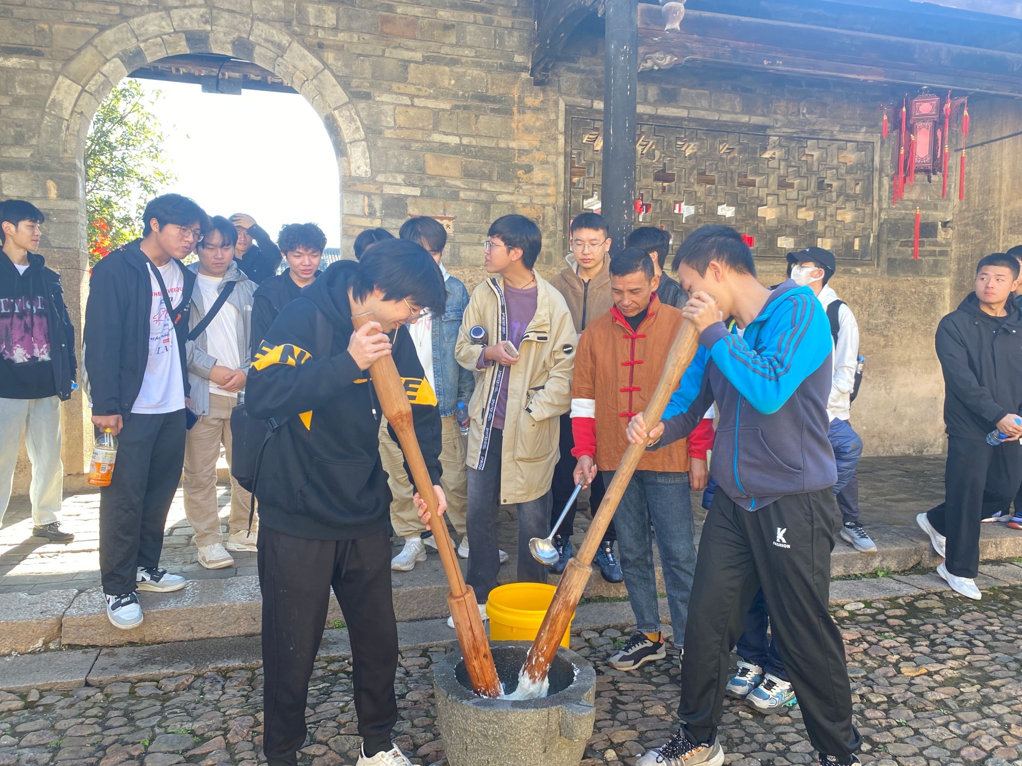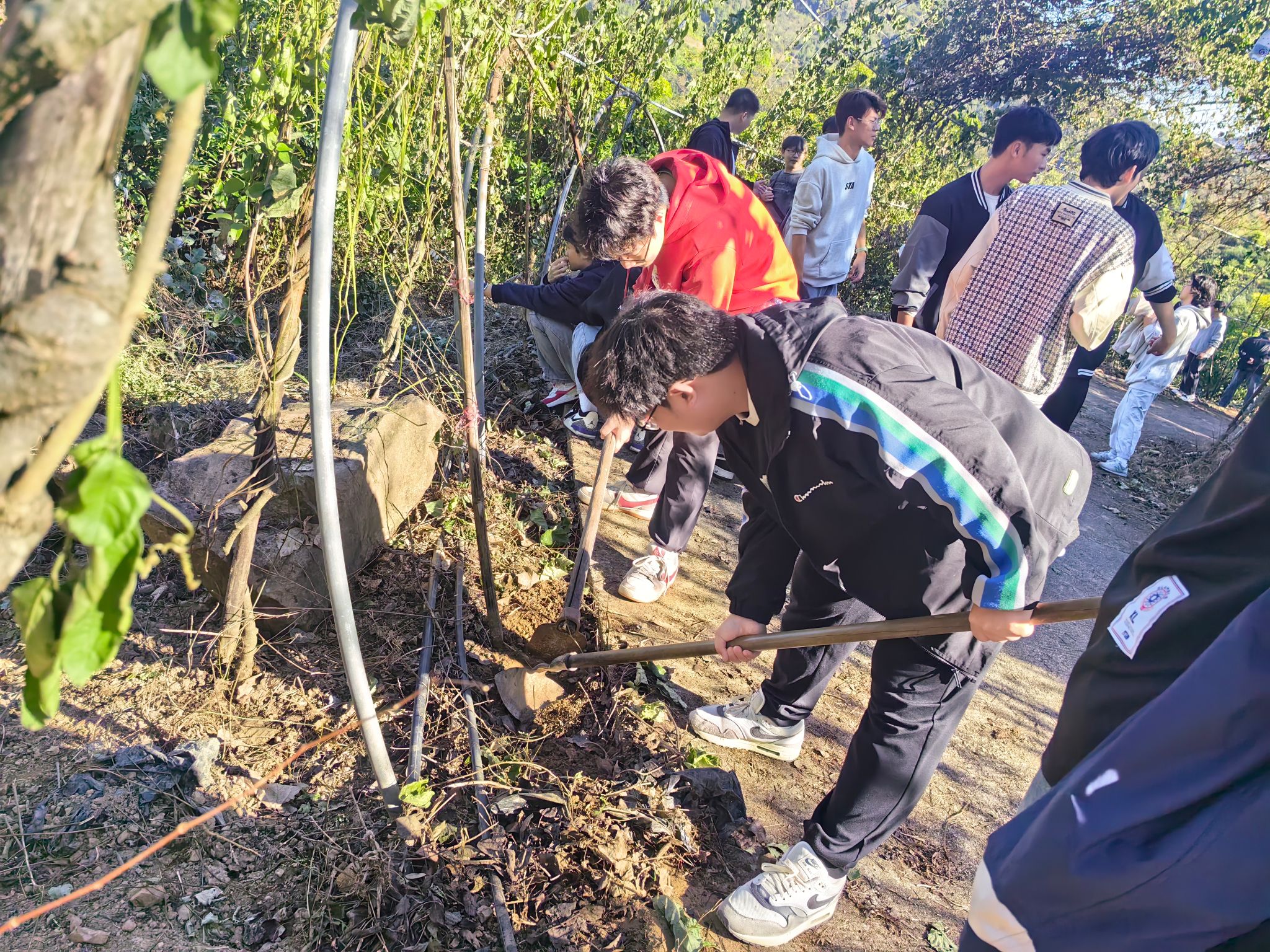 劳动教育实践活动的重头戏是亲身体验当地特色民俗打糍耙、前往当地的农田进行除草等农事活动。在劳动中,同学们分工合作,密切配合,充分发挥了团队协作精神。尽管汗水浸湿了衣背,但他们的脸上洋溢着劳动的快乐与满足。