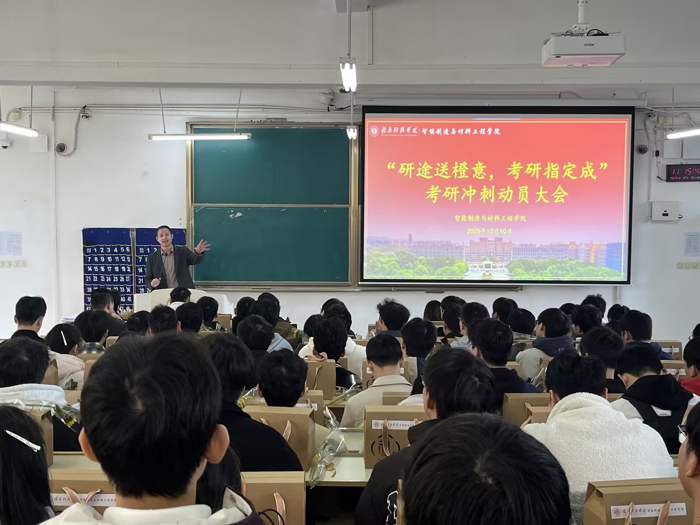 本报讯:考研在即,为有效缓解学子备考压力、增强学子信心,12月10日中午11点,2026世界杯预测于主教Z2D1教室举办“研途送橙意,考研指定橙”考研冲刺动员大会,以实际行动彰显育人担当,为2025届考研学子送上暖心助力。