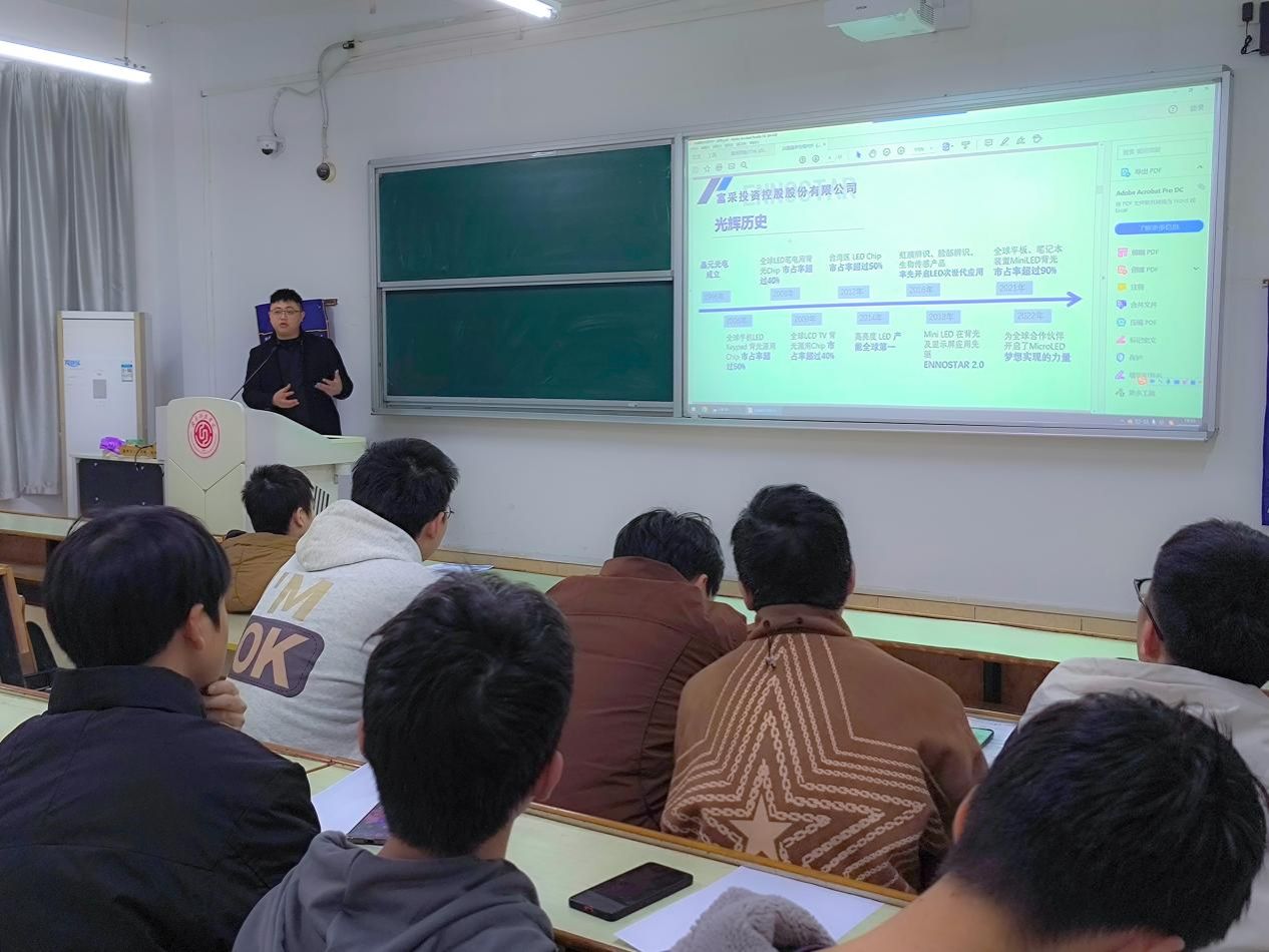 宣讲会上,丁超详细介绍了公司的介绍了公司的发展历程、企业文化、产业布局、技术优势以及未来的战略规划。作为行业内的技术领先企业,晶宇光电专注于高端LED外延片、芯片及封装器件的研发与制造,产品广泛应用于显示、背光、照明及新型智能终端等领域。公司强调创新驱动与精益制造,为员工提供了广阔的技术成长和职业发展空间。