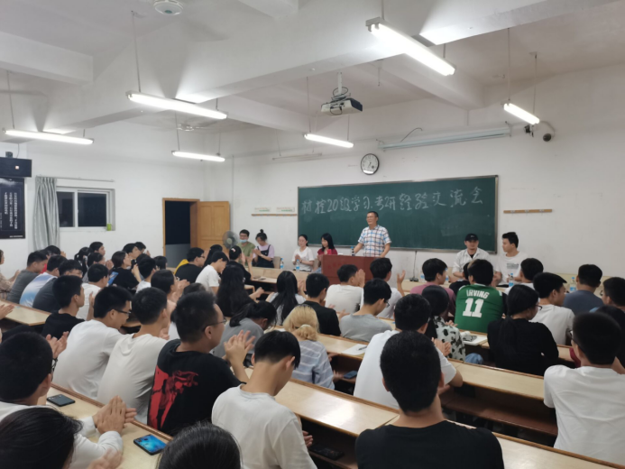 各位学长学姐以自己的切身经历向同学们讲述了考研的宝贵经验。他们认为,考研的成功等于正确的方法、不懈的努力、良好的心态以及恰当的复习材料。他们风趣的语言、开门见山的讲述风格、清晰地条理,赢得了同学们阵阵热烈的掌声。
