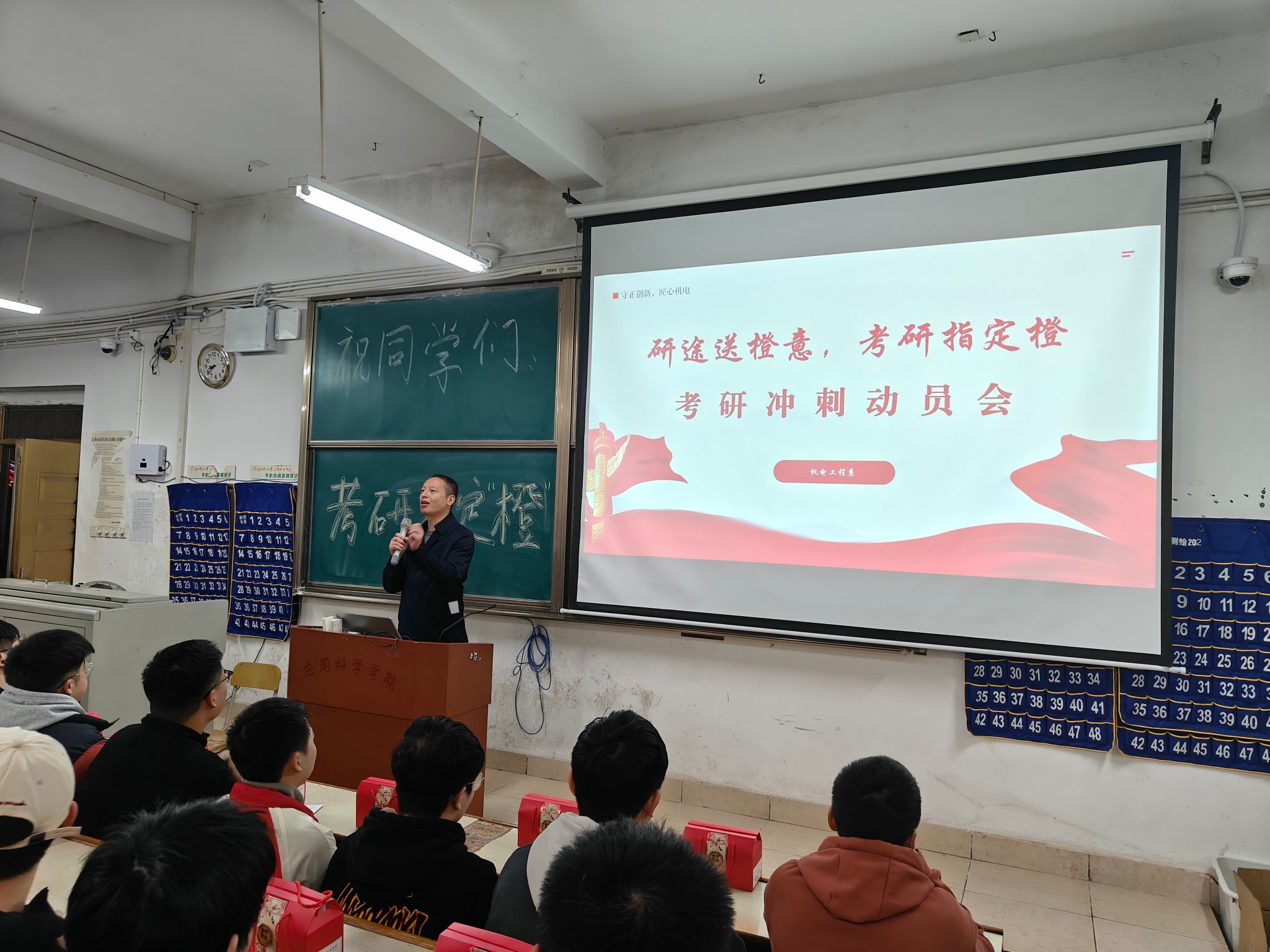 本网讯:2023年全国硕士研究生统一考试即将开始,为帮助备考学子们树立信心,化压力为动力,以最饱满的精神状态应对研究生考试,在考研途中激流勇进,世界杯冠军预测入口机电工程系于12月12日20:30在主教Z1D4召开“研途送橙意,考研指定橙”考研冲刺动员大会。机电工程系主任刘辉、副主任肖志华和关开荣、全体辅导员以及2024届全体考研员工参加本次会议,此次会议由肖志华主持。