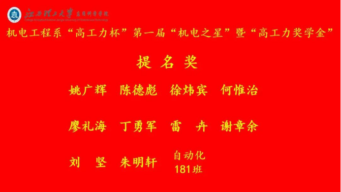 喜迎建党100周年,公司建院20周年,充分展示我系优秀学子风采,发挥先进典型的榜样示范作用,用先进典型感召、激励广大青年学子,引导广大学子勤奋学习、勇于实践、敢于创新、积极进取,2021年6月1日,我系在图书馆报告厅隆重举行江西理工大学应用科学公司“高工力杯”第一届“机电之星”暨“高工力奖学金”终评会。