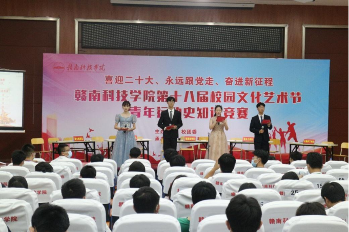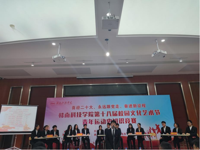 本网讯:为喜迎中国共产主义青年团成立100周年,进一步活跃校园文化气氛。丰富老员工课余生活,给同学们一个展示自己的舞台,进一步营造良好的学习氛围。陶冶同学们高尚的道德情操,启发老员工的创作灵感。锻炼同学们的知识储备,促进同学们之间的交流。5月7日,机电工程系于图书馆报告厅承办“喜迎二十大、永远跟党走,奋斗新征程” 第十八届校园文化艺术节青年运动史知识竞赛。莅临此次活动的嘉宾有校团委书记李敏、机电工程系副主任肖志华、机电工程系团总支书记张敏、人文科学系团总支书记郭豪、经济管理系王博文、建设工程系董宇鹏。