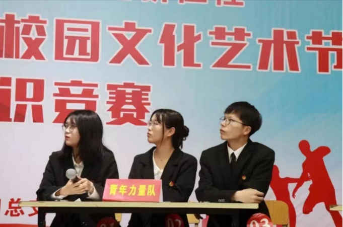 本次竞赛共有五个队伍参加,他们分别是机电工程系星火燎原队、建设工程系律动青春队、人文科学系强国追梦队、经济管理系青年力量队、信息工程系不要停下来队。比赛形式为现场答题计分制,所以参赛队伍通过“比知识,答题得佳绩”、“比速度,猜歌曲秀音律”和“比协作,决战巅峰迎风险”三个环节进行比拼,最后根据分数进行排名。经过激烈的角逐,律动青春队、强国追梦队、青年力量队得分相同,进入加题抢答环节。
