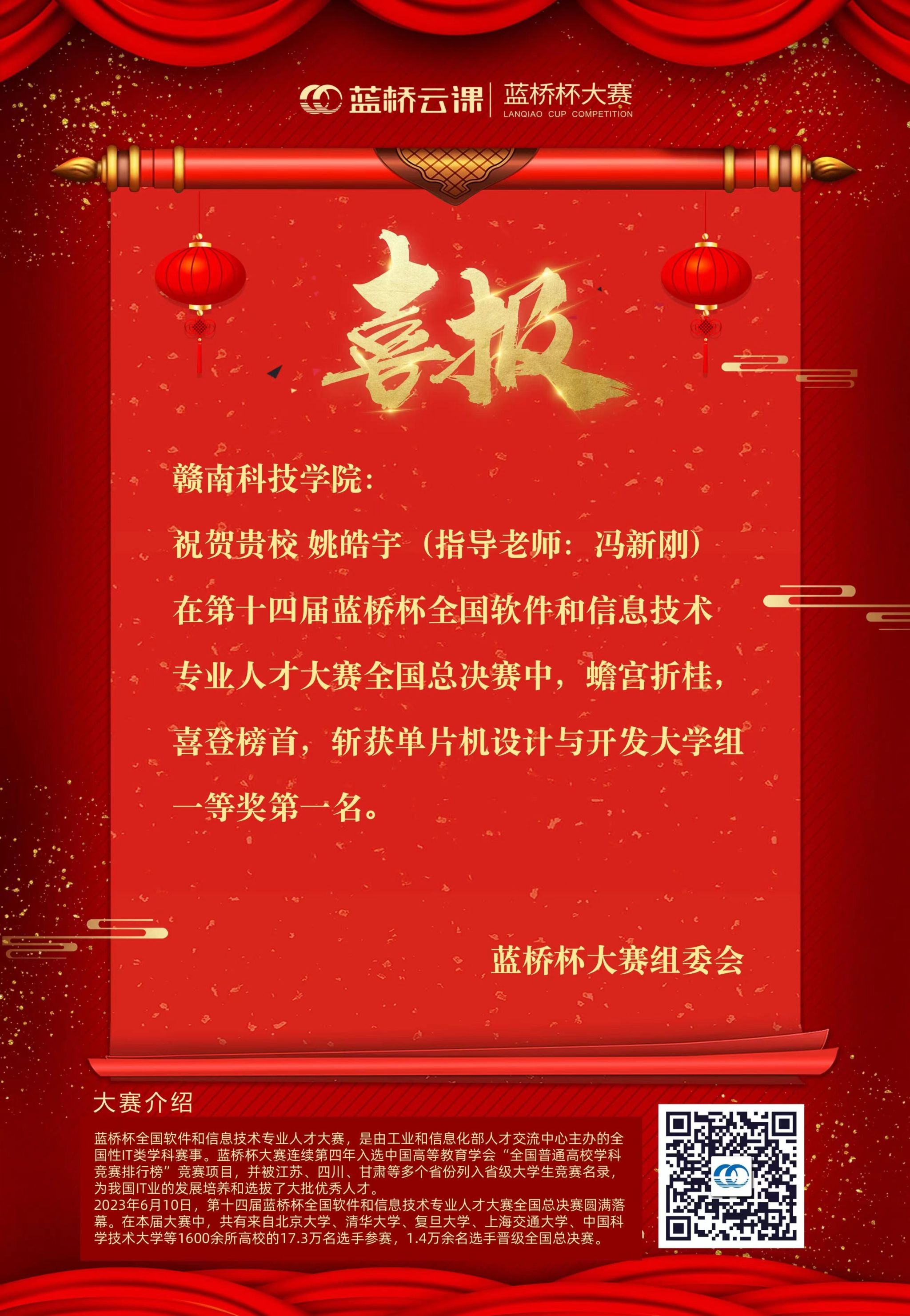 本网讯:近日,第十四届蓝桥杯全国软件和信息技术专业人才大赛(以下简称蓝桥杯大赛)全国总决赛成功举办。第十四届蓝桥杯大赛共吸引超过17.3万名选手报名参赛,其中1.4万余名获得省赛一等奖的选手晋级全国总决赛,决赛共在全国50所赛点院校联动举行,完成了C/C++程序设计、Java软件开发、Python程序设计、Web应用开发、软件测试、单片机设计与开发、嵌入式设计与开发、物联网设计与开发、EDA设计与开发共九大竞赛科目的比拼。