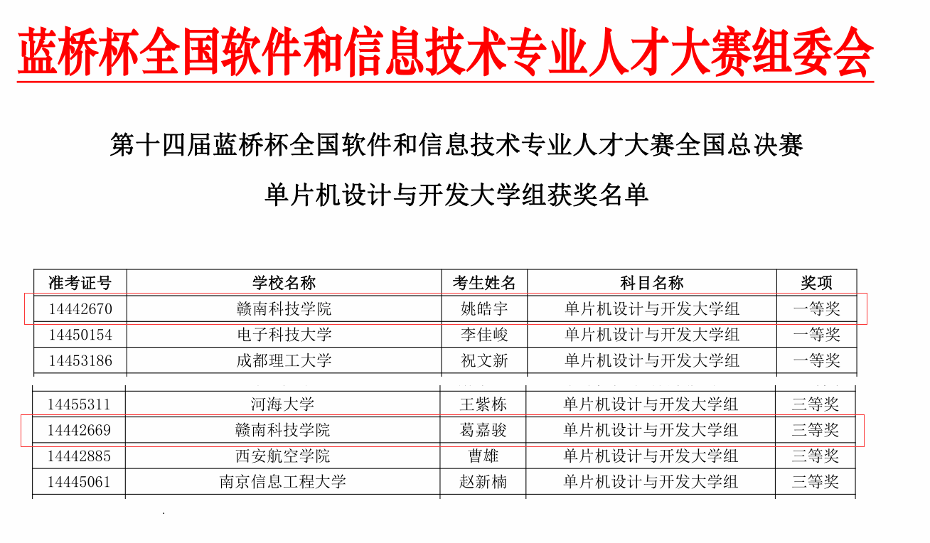 世界杯冠军预测入口学子电气201班姚皓宇和机械204班葛嘉骏参加了南昌大学赛点单片机设计与开发大学组的决赛,并荣获一等奖1项,三等奖1项的优异成绩,其中姚皓宇同学获得一等奖第一名,取得公司在该赛事新的突破。成绩的取得是员工平时刻苦训练的成果,这其中也凝聚了指导老师们的心血。通过参加该项赛事,员工获得很好的锻炼机会,增强了创新思维、实践经验并且提高了嵌入式开发设计能力。