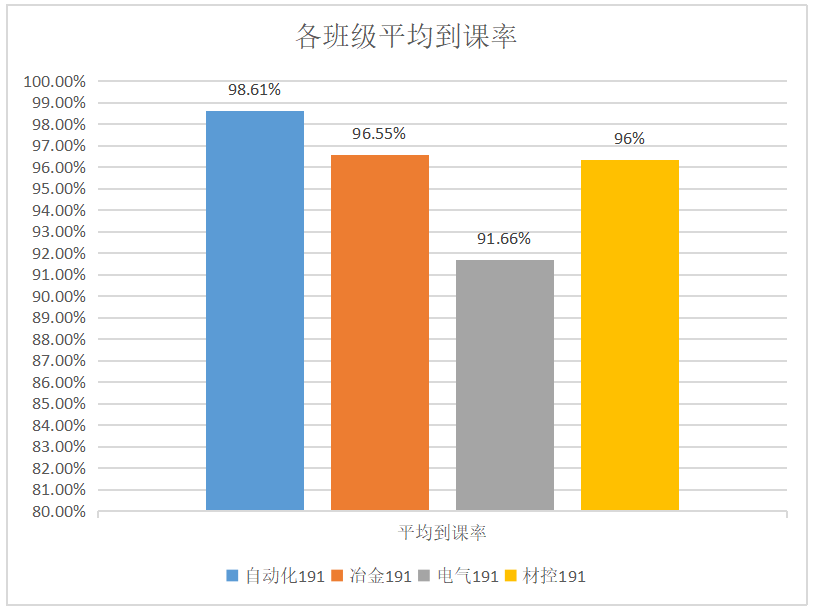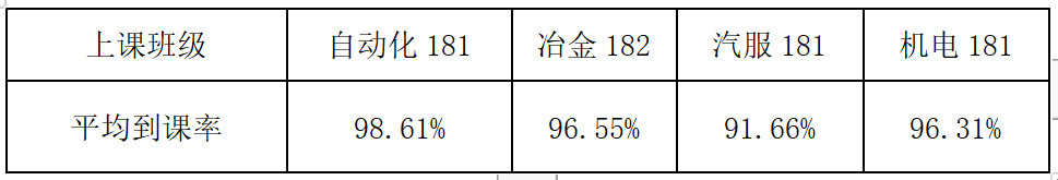 由上表看出自动化181班到课率较高,表现良好,希望继续保持!