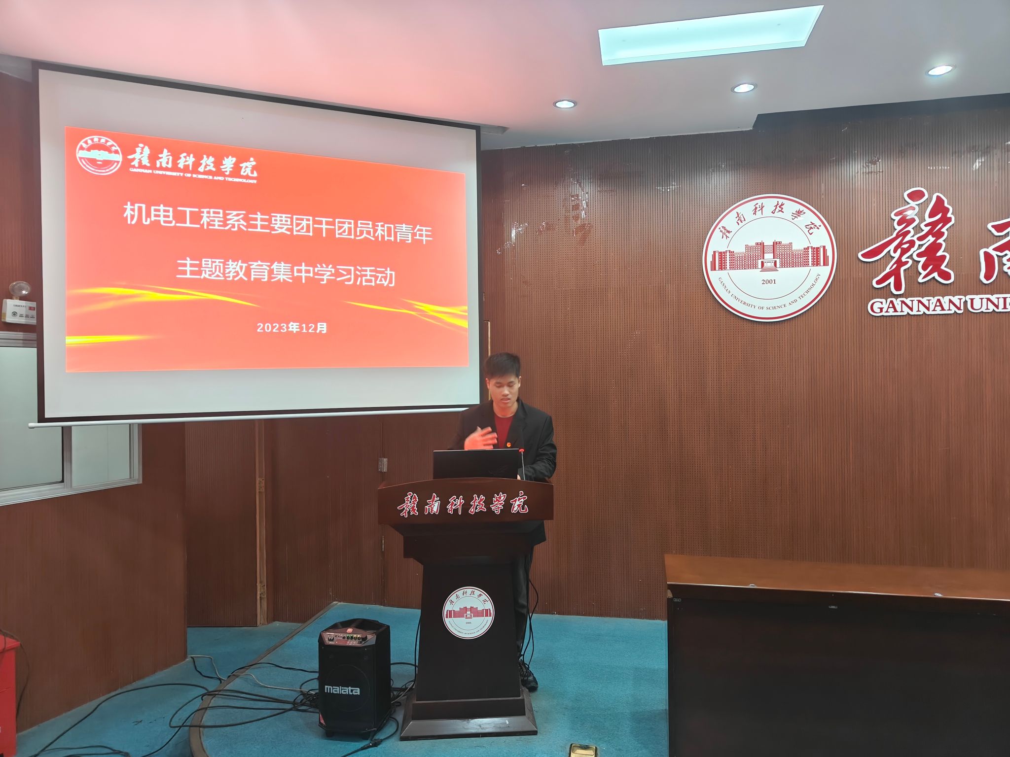 本网讯:为了加强我系学干联系,增强归属感与成就感,同时提高了学干们的工作能力、工作效率,2023年12月10日下午,机电工程系团总支、员工会在MBA报告厅组织召开了机电工程系主要团干团员和青年主题教育集中学习活动,会议由机电工程系团总支书记卢名亮老师主持,全体团总支员工会学干参与了此次培训。