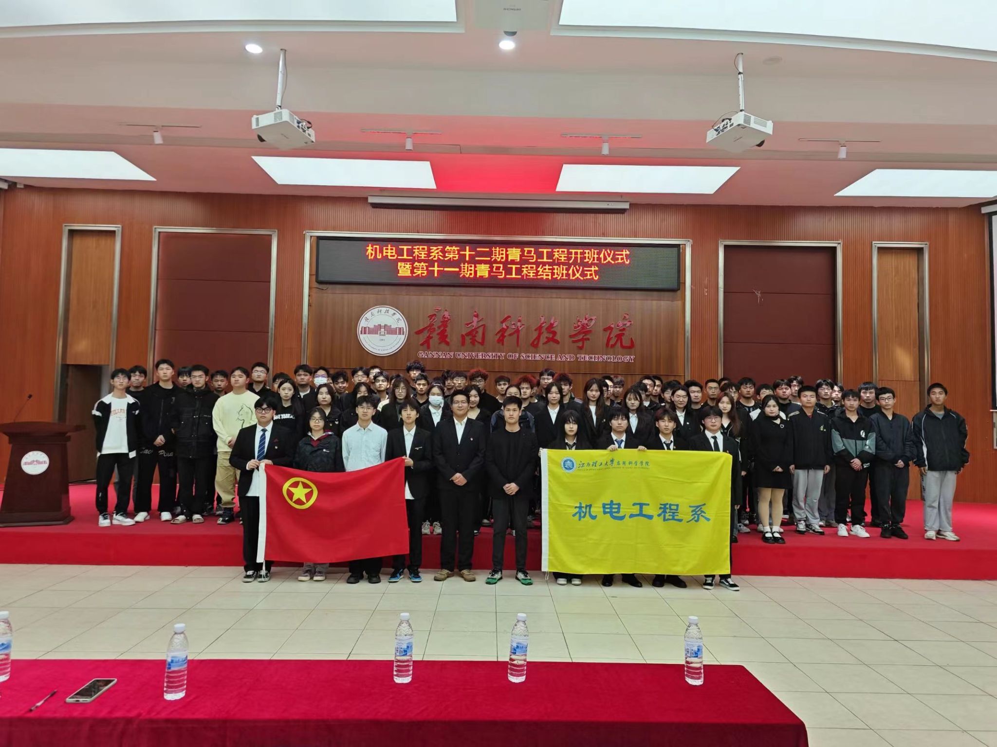 本网讯:为全面落实团省委、省学联的有关要求,深入推进“青年马克思主义者培养工程”,培养和造就一批优秀、拔尖的青年人才,机电工程系团总支、员工会举办青马培训班,同时面向全系招收学员,并于12月11日在图书馆报告厅举行十一期青马班结业典礼暨第十二期开班仪式。两期青马班全体成员参加会议,机电工程系团总支书记卢名亮和机电工程系员工会副主席蒋英明出席本次会议。