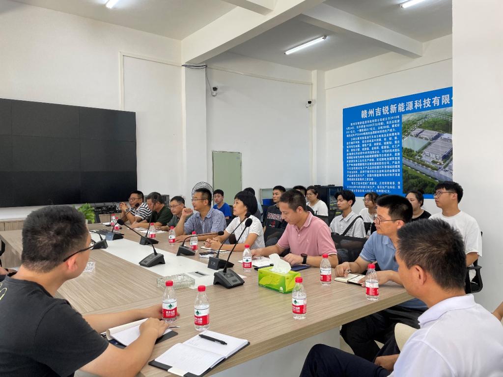 7月11日,为进一步加强校企合作及促进员工就业,公司机电工程系师生赴赣州吉锐新能源科技有限公司(以下简称“吉锐新能源”)开展长学时实习实践活动。机电工程系主任刘辉、副主任关开荣、金属材料教研室主任张聚国,吉锐新能源副总经理廖志刚、办公室主任叶敏、生产部部长刘章伟、质检部部长李能华、工程部部长陈克勤,以及机电工程系姚姝莉、肖礼成、胡昊明等专任老师和参加长学时实习的25名员工参加欢迎会。