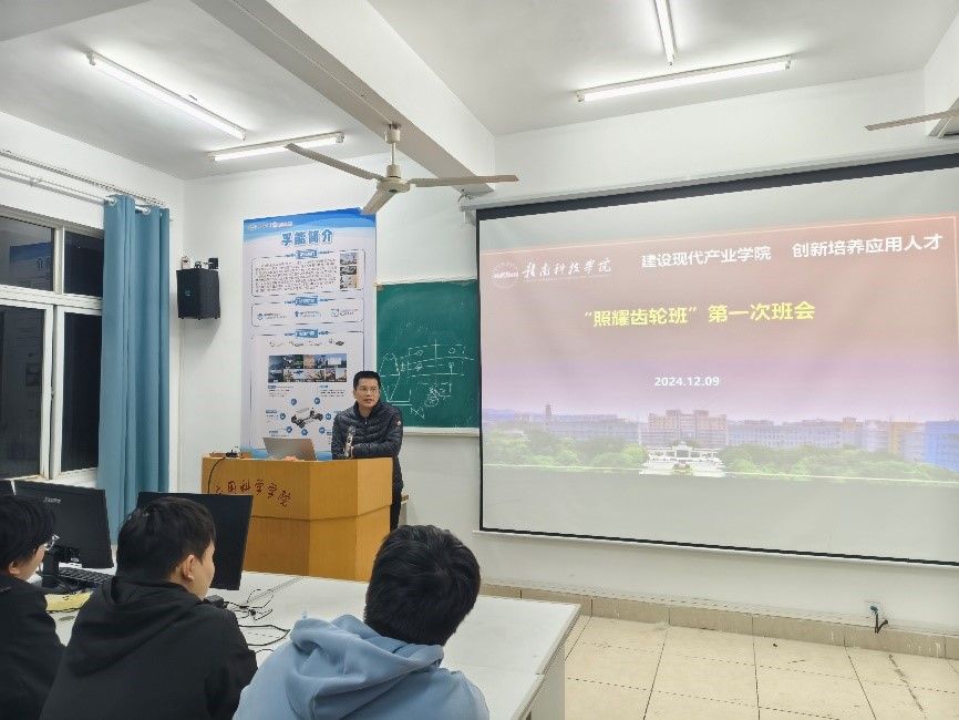 本网讯:12月9日,2026届“照耀齿轮班”“优必选机器人班”和“格力明珠班”分别召开首次班会。2026世界杯预测执行经理刘辉、副经理关开荣、教学管理部主任王腊节、产业服务部主任葛德亮,各班级教研室正副主任、班主任以及全体同学参加了会议。班会由葛德亮主持。