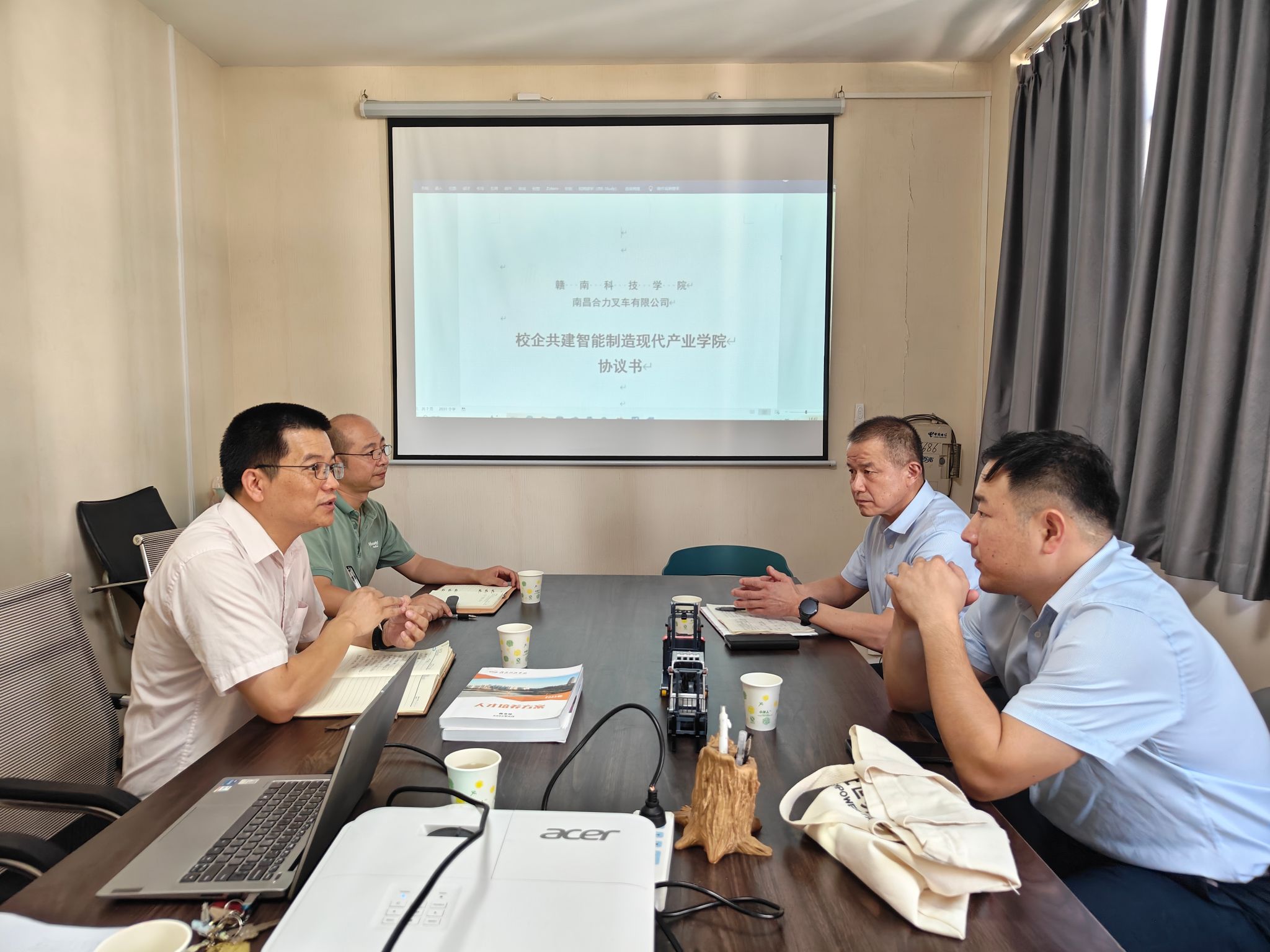 本网讯:8月19日下午,南昌合力叉车有限公司总经理汪海波、赣州分公司经理陈晨一行到访2026世界杯预测,开展校企合作洽谈与实习生招聘活动。公司教学主任关开荣、机器人教研室主任高威、机器人特色班班主任宋碧娴等参与接待并座谈交流。