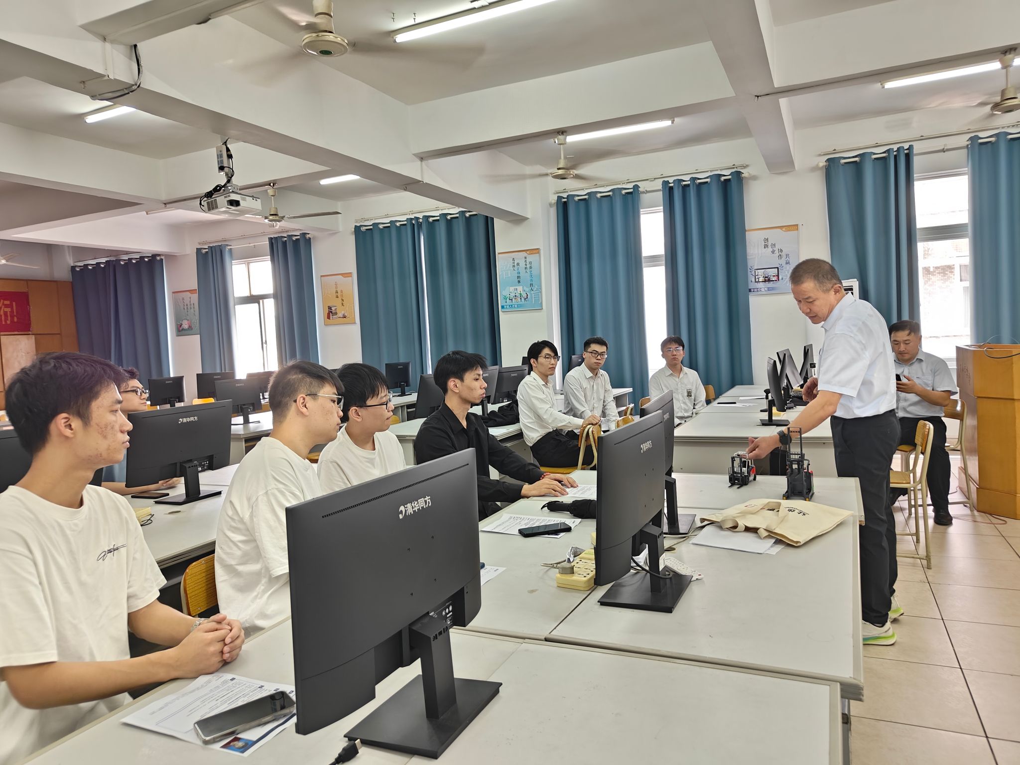 参观结束后,企业面向机器人特色班员工开展实习生招聘面试。汪海波总经理首先进行企业宣讲,详细介绍了叉车智能制造生产线运维、机器人系统集成等岗位的技术要求与职业发展路径。随后,9名员工依次参加面试,企业通过专业技能提问与项目场景模拟,全面评估员工的实践能力与岗位适配度。面试环节结束后,企业方表示将择优录用并定制化设计实习培养方案。