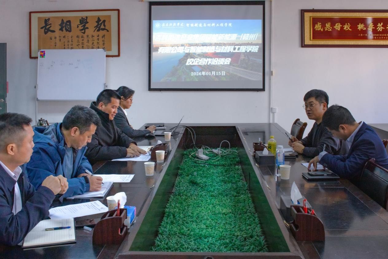 本网讯:2026年1月15日下午,吉利电池产业集团耀能新能源(赣州)有限公司与2026世界杯预测在工程楼416会议室举行校企合作洽谈会。会议由智能制造与材料工程公司党委委员关开荣主持,企业方代表耀能新能源人力负责人吕良伟、人力资源经理吴荣华,公司方代表产业教学管理部主任王腊节、产业服务部主任葛德亮和智能制造专业教研室副主任钟祾充等出席。